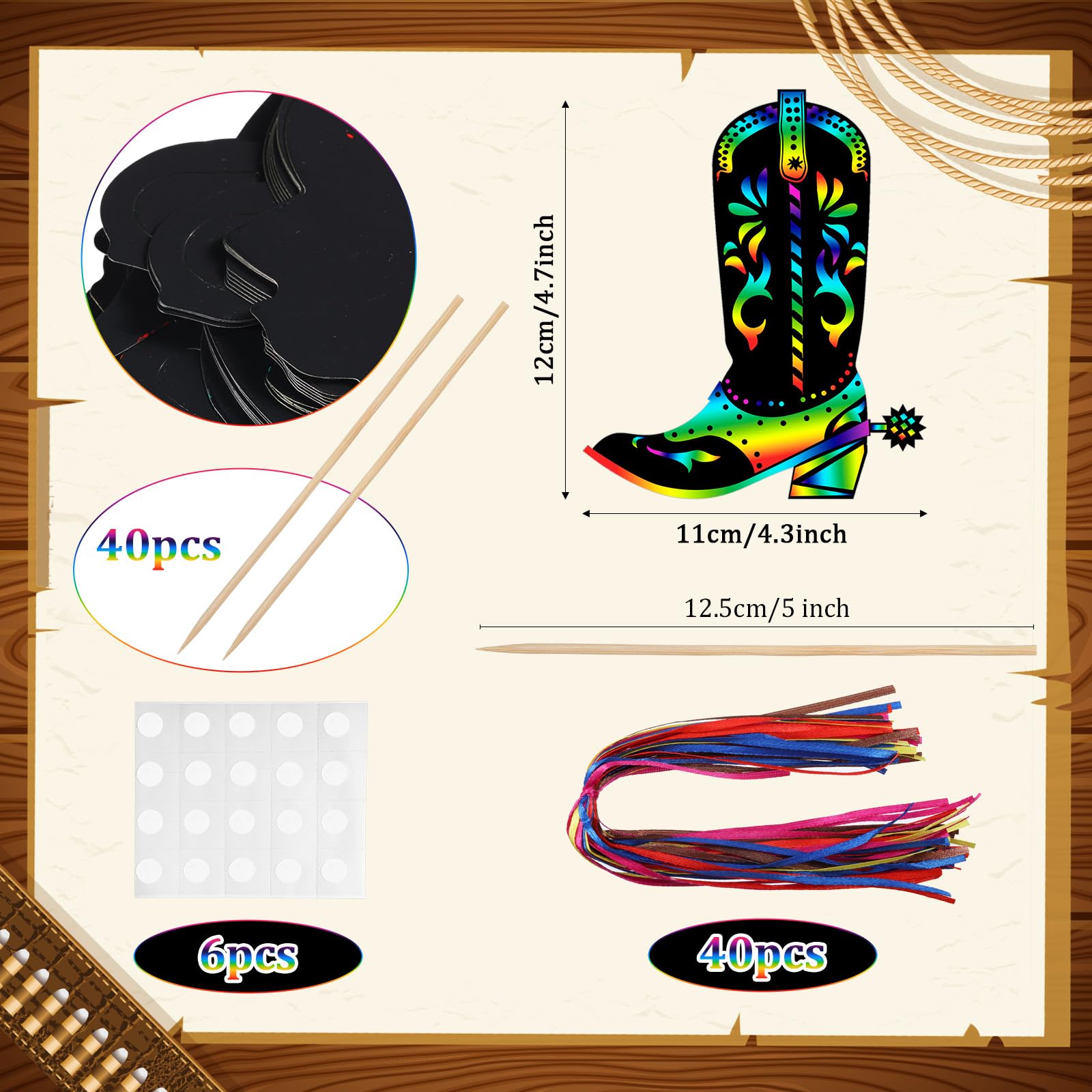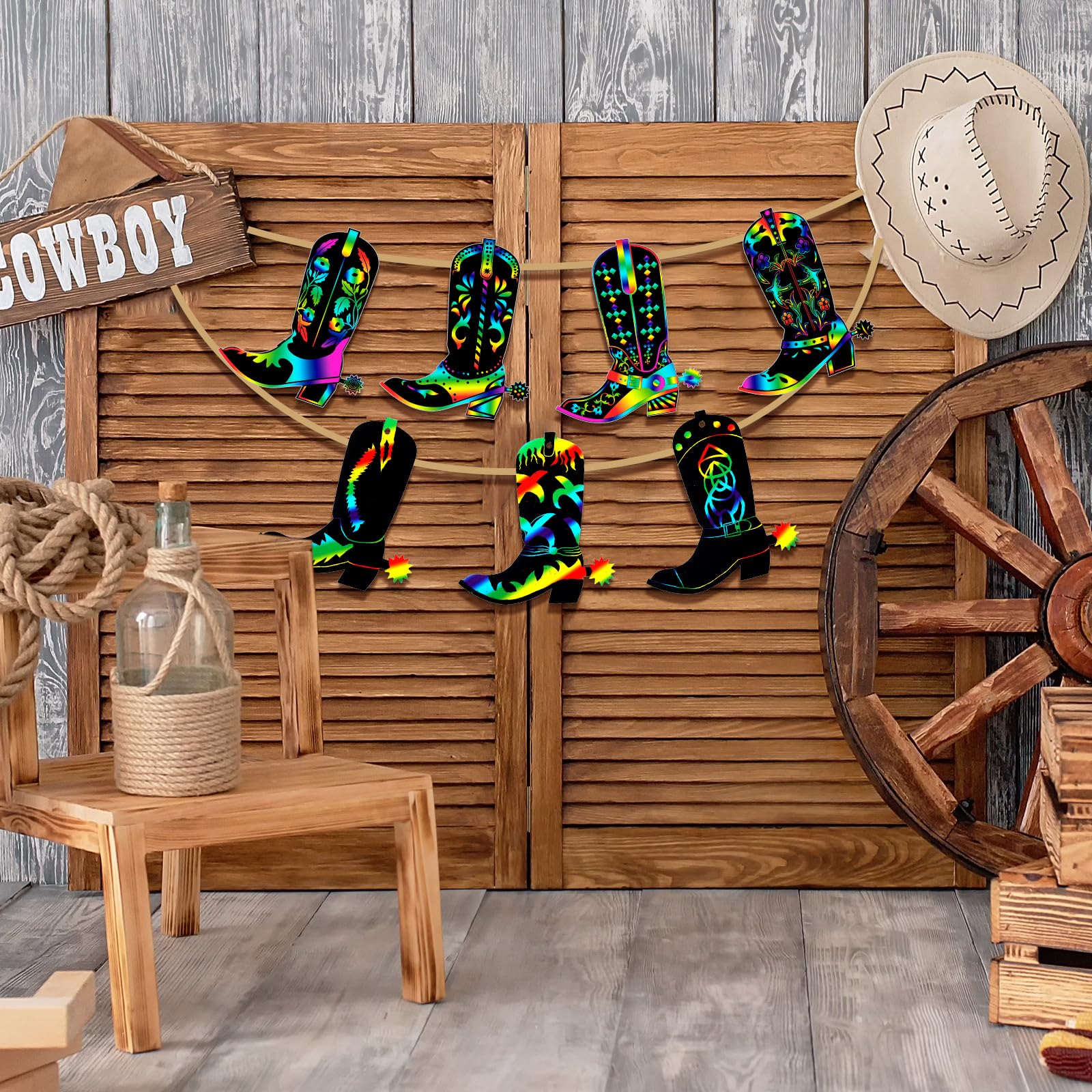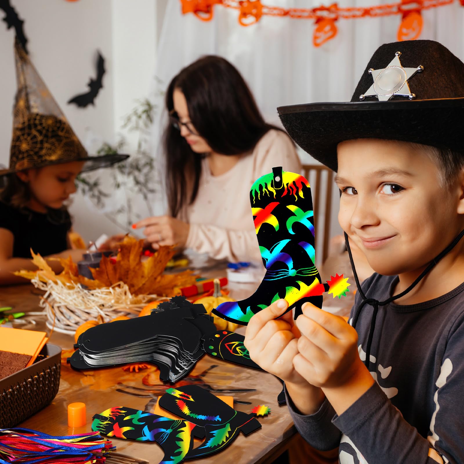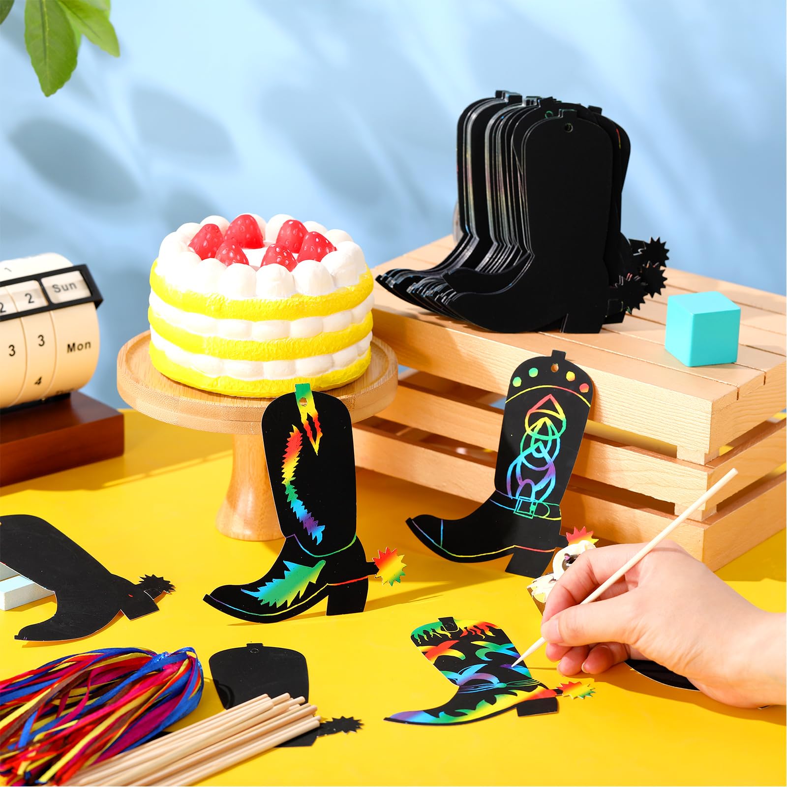 Hungdao 80 Pcs Western Cowboy Boot Scratch Cards for Boys Cowboy Crafts Rainbow Cowboy Scratch Paper Cowboy Party Favors for Western Theme Birthday Party Classroom DIY Activities