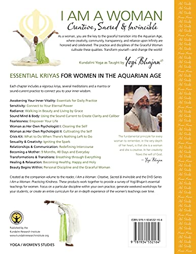 This yoga manual accompanies the “I Am A Woman” reader and has been organized by topic so that you can focus on a particular discipline within your own practice, generate weekend workshops for your students, or create an entire curriculum for an in-depth experience of the women’s teachings over time. Topics include: -Awakening Your Inner Vitality: Essentials for Daily Practice -Sensitivity: Connect to Your Eternal Power -Radiance: Walking in Beauty and Living by Grace -Sound Mind & Body: Using the Sound Current to Create Clarity and Caliber -Fearlessness: Empower Your Life -Woman as Her Own Psychologist I: Clearing the Self -Woman as Her Own Psychologist II: Cultivating the Self -Crisis Kit: What to Do When There’s Nothing Left to Do -Sexuality & Creativity: Igniting the Spark -Relationships & Communication: Redefining Intercourse -Becoming a Mother: 9 Months, 40 Days, and Everyday -Transformations and Transitions: Breathing through Everything -Healing & Relaxation: Becoming Healthy, Happy, and Holy -Beauty Begins Within: Personal Discipline and the Graceful Woman