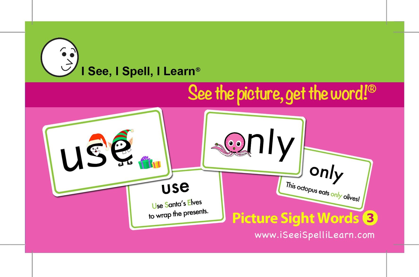 • Flashcards with Fun Picture Cues and Images that help children read, spell and understand sight words and homophones.