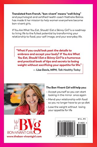 Translated from French, “bon-vivant” means “well-living” and psychologist and certified health coach Nathalie Botros has made it her mission to help women everywhere become bon-vivant girls. If You Are What You Eat, Should I Eat a Skinny Girl? is a roadmap to living life to the fullest potential by transforming yourrelationship to food, your self-image, and your everyday life. “What if you could look past the details to embrace and accept your body? If You Are What You Eat, Should I Eat a Skinny Girl? is a humorous and practical book of tips and secrets to losing weight without sacrificing your appetite for life.” — Lisa Davis, MPH, Talk Healthy Today