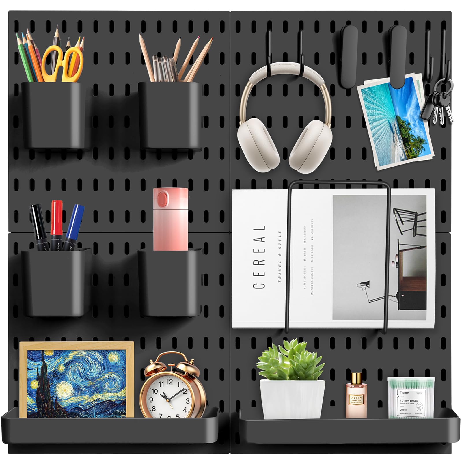 - Multipurpose: This pegboard for wall combination kit is versatile for many areas of your home. 4 Pieces pegboard panel can be spliced together to become 22 x 22 inches. The pegboard is great for wall organizing, craft room storage, and ornaments display. Our pegboard wall organizer kit can be used as a mail holder, office organizer, entrance organization, bathroom storage, playroom organizer, etc