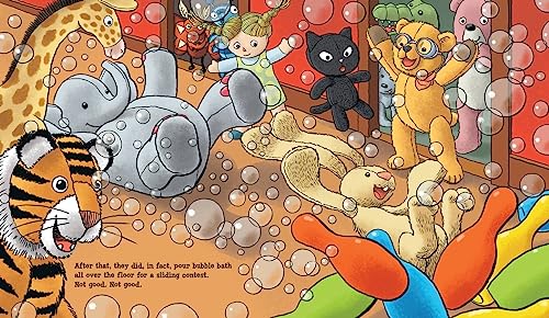 What do your toys do when your back is turned? Mischief — and a bit of wish fulfillment — are in play when a ringleader teddy bear throws a very memorable party. Have you ever wondered what stuffed animals do while their companion humans are at school? What if a teddy bear invited all his stuffed animal friends over? Imagine the wild party that might ensue, complete with jumping (a little too hard) on the bed, coloring on the walls, dressing up in Mom’s clothes, having a bubble-bath sliding contest in the hall, sledding down a “cushion mountain” on a cookie tray. . . . As adorable as it is raucous, Jancee Dunn’s whimsical tale of freedom and fun comes to vibrant life in Scott Nash’s colorful illustrations.
