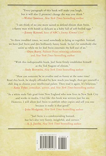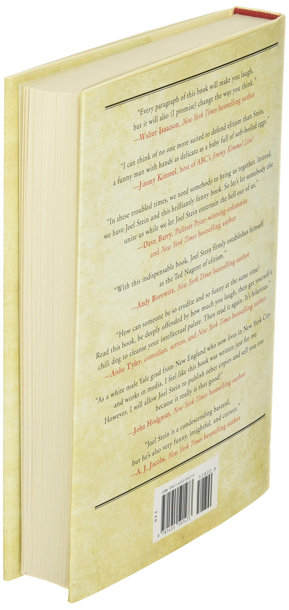 From Thurber finalist and former star Time columnist Joel Stein comes a “brilliant exploration” (Walter Isaacson) of America’s political culture war and a hilarious call to arms for the elite. “I can think of no one more suited to defend elitism than Stein, a funny man with hands as delicate as a baby full of soft-boiled eggs.” –Jimmy Kimmel, host of Jimmy Kimmel Live! The night Donald Trump won the presidency, our author Joel Stein, Thurber Prize finalist and former staff writer for Time Magazine, instantly knew why. The main reason wasn’t economic anxiety or racism. It was that he was anti-elitist. Hillary Clinton represented Wall Street, academics, policy papers, Davos, international treaties and the people who think they’re better than you. People like Joel Stein. Trump represented something far more appealing, which was beating up people like Joel Stein. In a full-throated defense of academia, the mainstream press, medium-rare steak, and civility, Joel Stein fights against populism. He fears a new tribal elite is coming to replace him, one that will fend off expertise of all kinds and send the country hurtling backward to a time of wars, economic stagnation and the well-done steaks doused with ketchup that Trump eats. To find out how this shift happened and what can be done, Stein spends a week in Roberts County, Texas, which had the highest percentage of Trump voters in the country. He goes to the home of Trump-loving Dilbert cartoonist Scott Adams; meets people who create fake news; and finds the new elitist organizations merging both right and left to fight the populists. All the while using the biggest words he knows.
