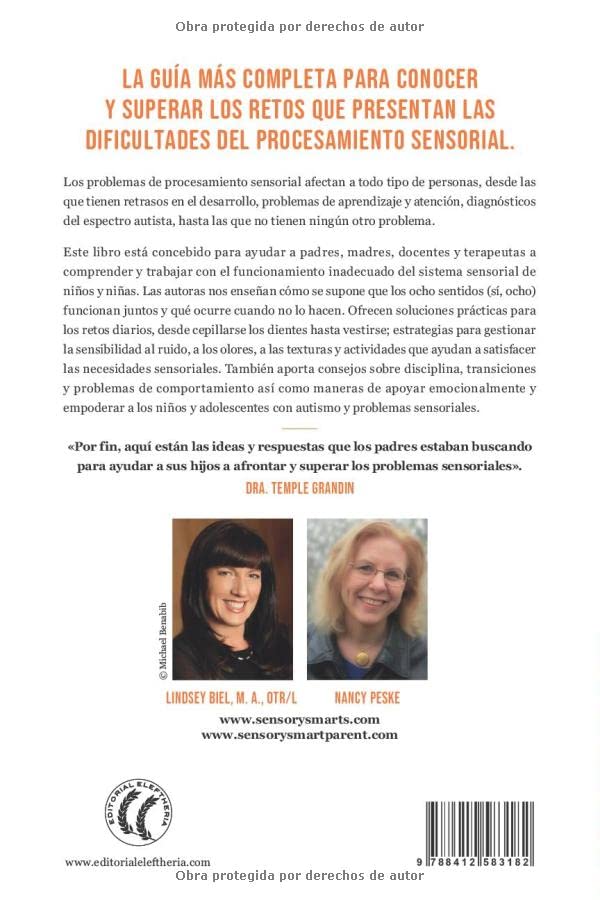 La guia mas completa para conocer y superar los retos que presentan las dificultades del procesamiento sensorial. <>. –Dra. Temple Grandin Infancia sensorialmente inteligente ha sido premiado en EE.UU. con el National Parenting Publications Gold Award y el iParenting Media Award. Los problemas de procesamiento sensorial afectan a todo tipo de personas, desde las que tienen retrasos en el desarrollo, problemas de aprendizaje y atencion, diagnosticos del espectro autista, hasta las que no tienen ningun otro problema. Este libro esta concebido para ayudar a padres, madres, docentes y terapeutas a comprender y trabajar con el funcionamiento inadecuado del sistema sensorial de ninos y ninas. Las autoras nos ensenan como se supone que los ocho sentidos (si, ocho) funcionan juntos y que ocurre cuando no lo hacen. Leyendo Infancia sensorialmente inteligente, aprenderas a… Determinar que comportamientos son atipicos, mediante una lista de comprobacion sensorial y un nuevo modo de observar los problemas. Reconocer la hiperestimulacion (o subestimulacion) neurologica y saber que ayudar al cuerpo de tu hijo mejora su modo de comportarse. Aumentar la capacidad de ninos y ninas de tolerar sensaciones y situaciones perturbadoras en casa, en la escuela y en el vecindario. Sintonizar con las necesidades sensoriales singulares de ninos y ninas y ayudarles a encontrar modos aceptables de satisfacerlas. Aplicar estrategias que ayuden a tu hijo, disminuyan los comportamientos dificiles de manejar y lo capaciten para afrontar los complicados retos de la vida. Abordar problemas de tipo oral-motor, como el retraso en el habla y los problemas de alimentacion. Lidiar con retrasos del desarrollo, problemas de aprendizaje y desorganizacion. Mejorar el hogar, incluyendo los juguetes y el material adecuados. Maneras de apoyar emocionalmente y empoderar a ninos, ninas y adolescentes con autismo y problemas sensoriales. <>. –Carol Stock Kranowitz, autora de The Out-of-Sync Child y The Out-of-Sync Child Grows Up <>. –Barry M. Prizant, PhD, CCC-SLP, autor de Uniquely Human: A Different Way of Seeing Autism