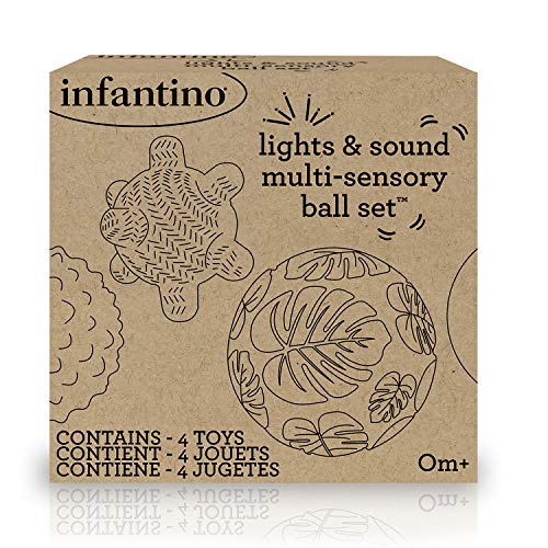 - Designed with baby in mind: 4 uniquely shaped balls with multi-textures for captivating must-touch play (This set includes 1 music and lights ball that will add a little extra touch of fun to ball time)