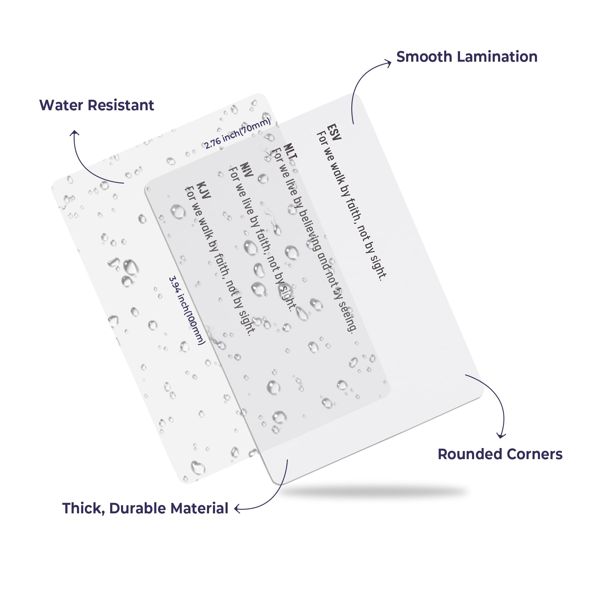 - Thick & Durable – The scripture memorization cards are premium quality featuring thick, durable, long-lasting cards. They also boast a matte finish. Measuring 2.75″ x 3.9″, these cards are small enough to be portable while still being large enough to read.
