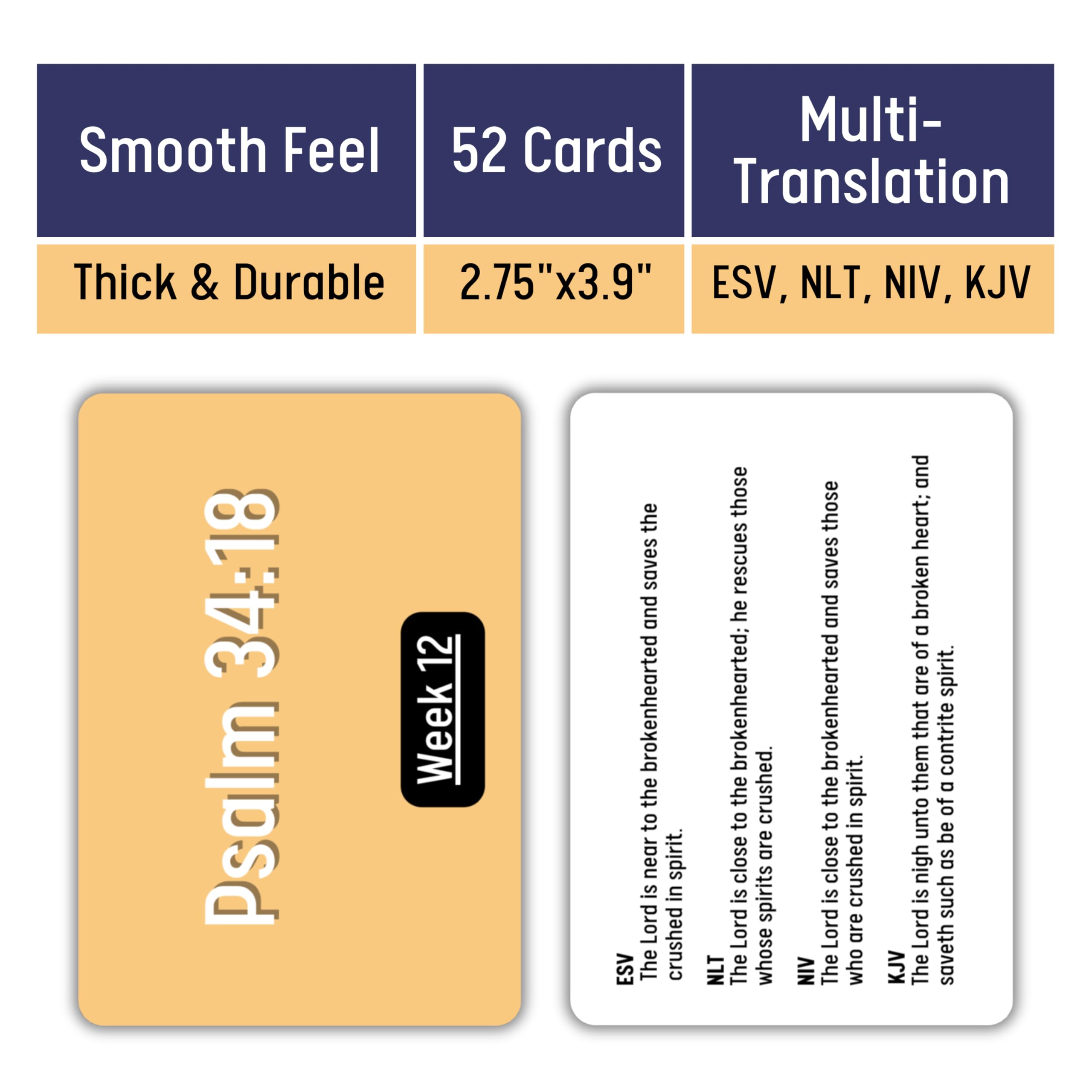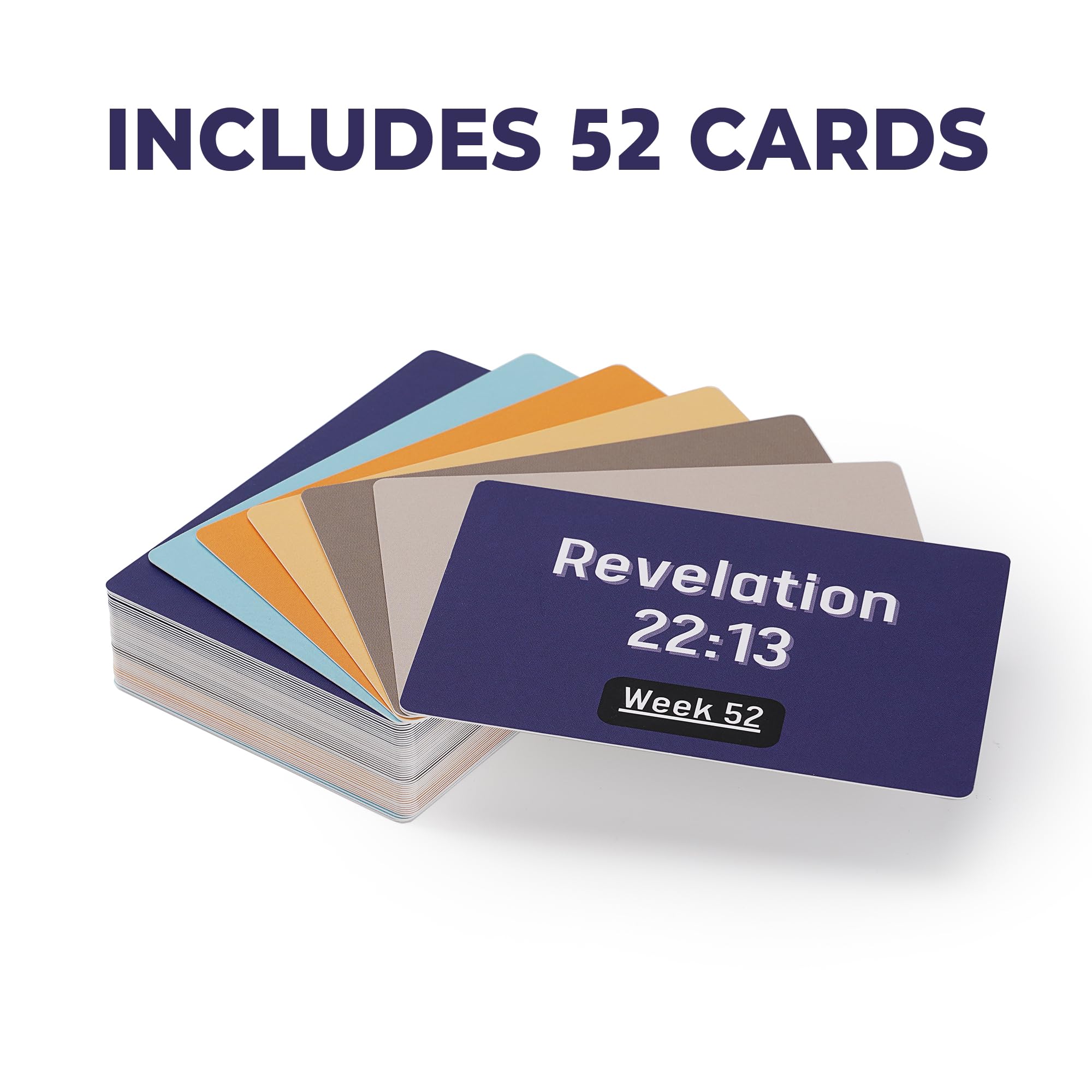 - 52 Cards – The deck has 52 scripture cards – one for each week of the year. Each week, individuals or groups can memorize and discuss different bible verses.