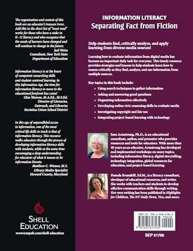 From the moment we wake up until the moment we go to sleep, we are bombarded with words, images, and videos, all presented in a dizzying array of media. Our increasingly difficult job is to make sense of the information we encounter throughout the day. Understanding and evaluating where information comes from and knowing how to separate fact from fiction are critical skills that many students do not have. This resource written by Sara Armstrong and Pamela Brunskill provides educators with the tools they need to help students: Become critical thinkers and users of information from multiple sources Assimilate information and discard unusable facts Become global thinkers who actively analyze, assess, and apply their learning not just to the classroom, but to the world around them This book includes activities and easy-to-use templates to support teachers as they teach the key skills of analyzing and understanding online information. It is divided into three sections to guide teachers through the lessons and activities needed to encourage critical reasoning and successful information literacy: Finding Information, Analyzing Information, and Using Information. Additional resources are provided in the appendices to further support teachers. An extensive list of recommended websites, software applications, digital information sites, and apps is also included. Equip students with the skills they need to become 21st century thinkers with this standards-based resource.
