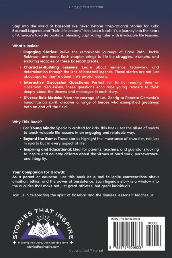 Inspirational Stories for Kids: Baseball Legends and Their Life Lessons: Unlocking Character Through the Journeys of Baseball Icons (Inspirational Stories for Kids: Baseball Edition)