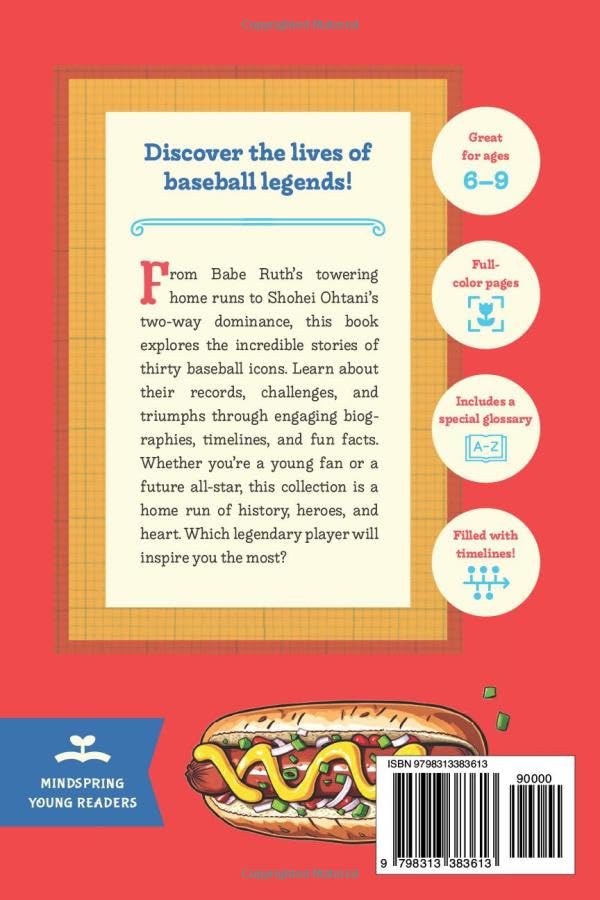 A collection of 30 illustrated baseball biographies at just the right size for kids transitioning into chapter books! Step up to the plate and dive into the inspiring stories of 30 legendary baseball players who shaped the game! From the towering home runs of Babe Ruth to the electrifying pitches of Nolan Ryan and the barrier-breaking courage of Jackie Robinson, this book brings baseball history to life in an engaging and easy-to-read format. Each chapter in this book of baseball biographies highlights a baseball icon, detailing their greatest achievements, challenges, and impact on the sport. With detailed biographies, player timelines, fun facts, and full-color illustrations, readers will learn about the records, perseverance, and passion that made these players unforgettable. Featuring past and present stars like Hank Aaron, Derek Jeter, Shohei Ohtani, and Mike Trout, this book is perfect for young fans, aspiring athletes, and anyone who loves the game. You’ll love the book’s many features, including: Full-color illustrations throughout! Perfectly sized at 72 pages to be manageable for kids starting chapter books Includes timelines for every biography, plus a glossary, timeline, and discussion questions at the end of the book Protective gloss coating on cover Whether you’re a lifelong fan or just starting to love the game, this book is a home run of inspiration, history, and excitement. Who will inspire you the most? Baseball legends include: Babe Ruth Lou Gehrig Satchel Paige Hank Greenberg Josh Gibson Ted Williams Jackie Robinson Willie Mays Mickey Mantle Hank Aaron Roberto Clemente Nolan Ryan Ozzie Smith Tony Gwynn Cal Ripken Jr. Fernando Valenzuela Jim Abbott Mariano Rivera Ken Griffey Jr. Ichiro Suzuki Derek Jeter Albert Pujols Yadier Molina Mike Trout Mookie Betts Bryce Harper Aaron Judge Shohei Ohtani Ronald Acuna Jr. Paul Skenes