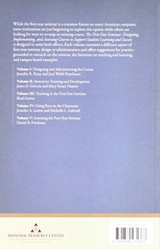 Guided by an understanding of adult development, the authors suggest strategies for designing and presenting a comprehensive faculty development program in support of the first-year seminar. Chapters focus on the organization of one-shot and ongoing development efforts, content for training programs, evaluation as a development activity, and strategies for recruiting and maintaining a dedicated instructor team. While focused on the first-year seminar, the volume offers useful insight for anyone charged with designing faculty development initiatives for first-year instructors. The First-Year Seminar: Designing, Implementing, and Assessing Courses to Support Student Learning and Success which includes all 5 volumes in this series is available as an eBook ISBN 9781942072652.