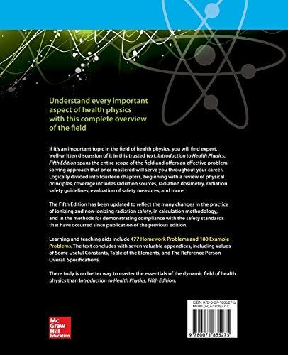 Publisher’s Note: Products purchased from Third Party sellers are not guaranteed by the publisher for quality, authenticity, or access to any online entitlements included with the product. Understand every important aspect of health physics with this complete overview of the field A Doody’s Core Title for 2019! If it’s an important topic in the field of health physics, you will find expert, well-written discussion of it in this trusted text. Introduction to Health Physics, Fifth Edition spans the entire scope of the field and offers an effective problem-solving approach that once mastered will serve you throughout your career. Logically divided into fourteen sections, beginning with a review of physical principles, coverage includes radiation sources, radiation dosimetry, radiation safety guidelines, evaluation of safety measures, and more. The Fifth Edition has been updated to reflect the many changes in the practice of ionizing and nonionizing radiation safety, in calculation methodology, and in the methods for demonstrating compliance with the safety standards that have occurred since publication of the previous edition. Learning and teaching aids include more than 470 Homework Problems and 175 Example Problems. The text concludes with seven valuable appendices, including Values of Some Useful Constants, Table of the Elements, and The Reference Person Overall Specifications. There truly is no better way to master the essentials of the dynamic field of health physics than Introduction to Health Physics, Fifth Edition.