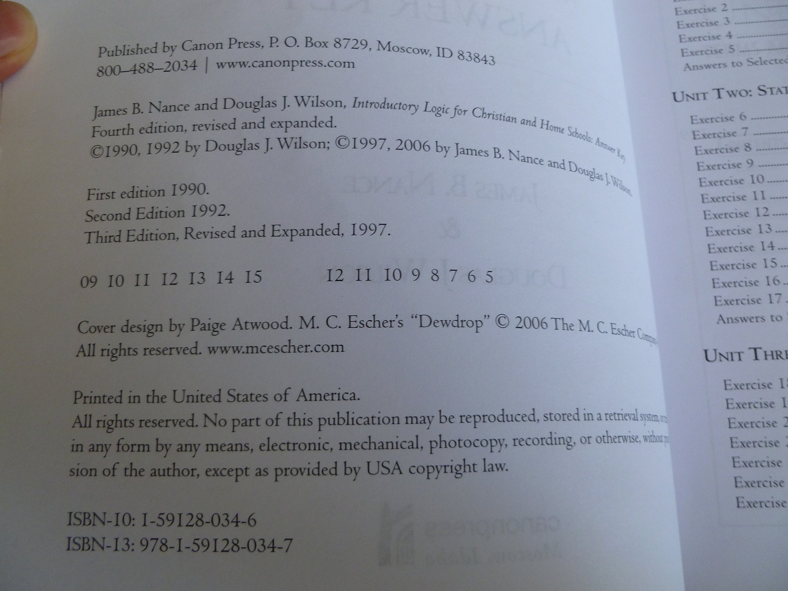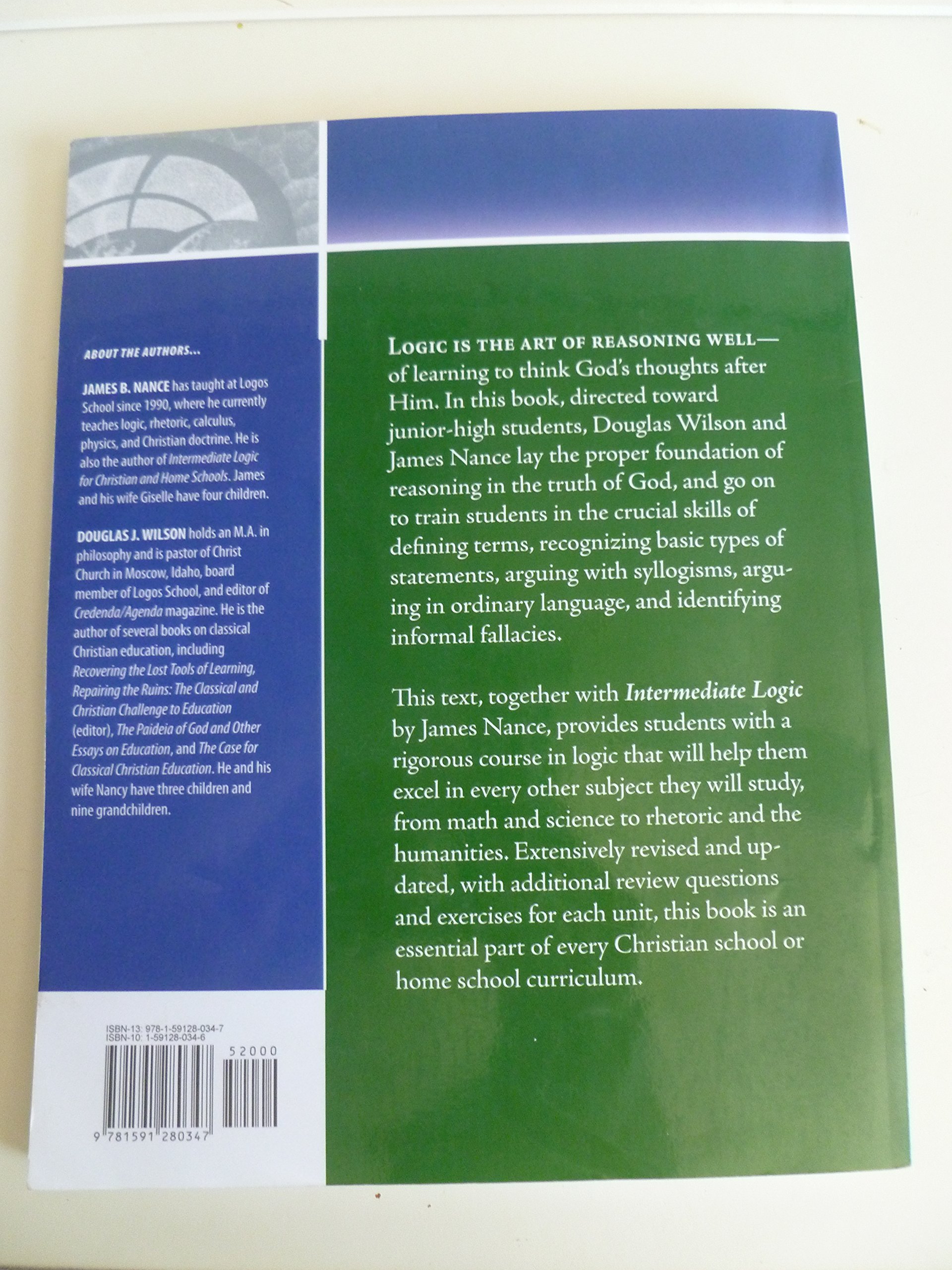 Logic is the art of reasoning well – of learning to think God’s thoughts after Him. In this book, directed toward junior-high students, Douglas Wilson and James Nance lay the proper foundation of reasoning in the truth of God, and go on to train students in the crucial skills of defining terms, recognizing basic types of statements, arguing with syllogisms, arguing in ordinary language, and identifying informal fallacies. This text, together with Intermediate Logic by James Nance, provides students with a rigorous course in logic that will help them excel in every other subject they will study, from math and science to rhetoric and the humanities. Extensively revised and updated, with additional review questions and exercises for each unit, this book is an essential part of every Christian school or home school curriculum.