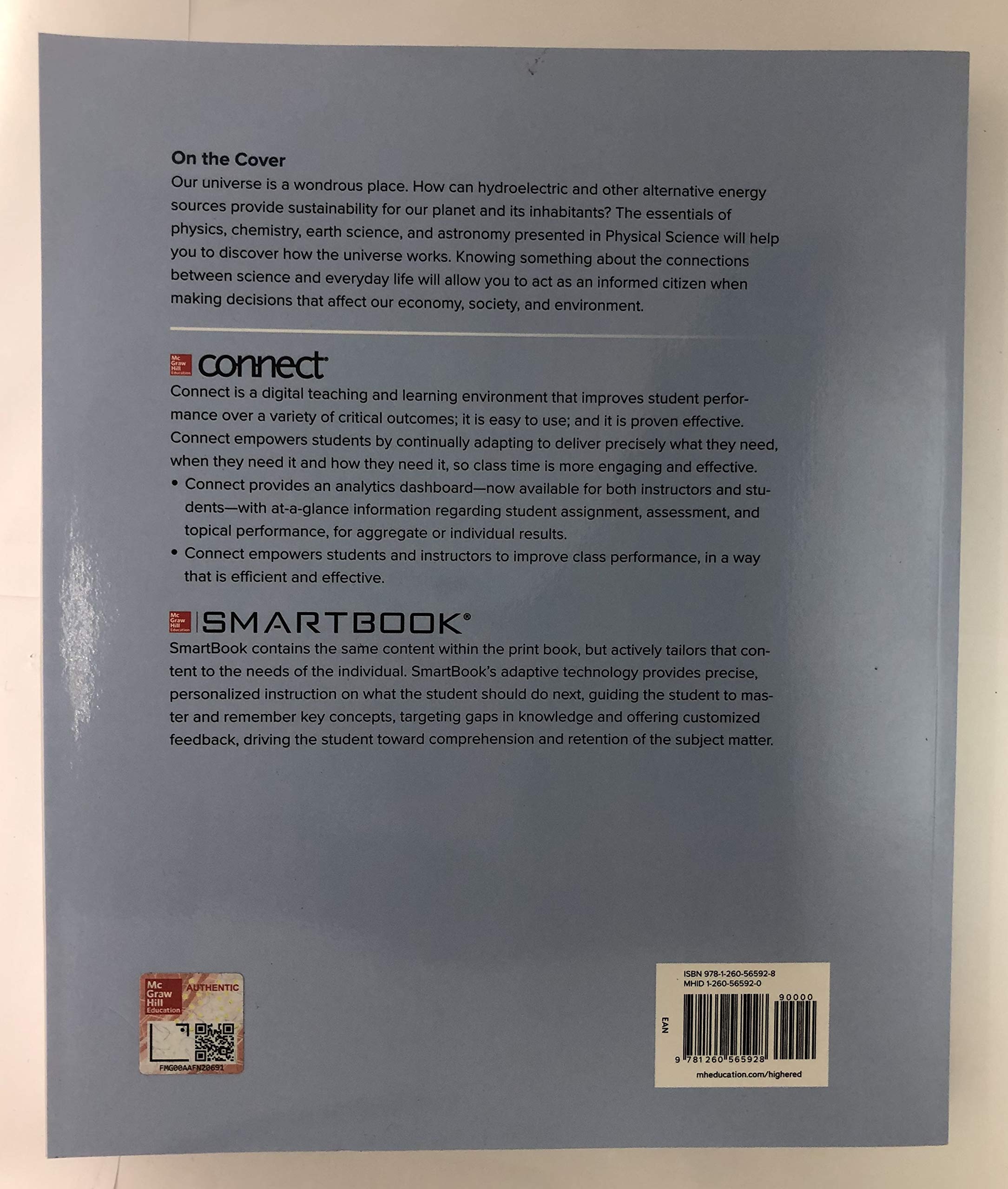 ISBN: 9781260565928 is an International Student Edition of Physical Science 12th Edition by Bill Tillery This ISBN 9781260565928 is Textbook only. It will not come with online access code. Online Access code (should only be purchased when required by an instructor ) sold separately at ISBN 9781260411287 The content of of this title on all formats are the same. Physical Science, Twelfth Edition, is intended to serve the needs of non-science majors who are required to complete one or more physical science courses. It offers exceptional, straight-forward writing, complemented with useful pedagogical tools. Physical Science introduces basic concepts and key ideas while providing opportunities for students to learn reasoning skills and a new way of thinking about their environment. No prior work in science is assumed. The text offers students complete coverage of the physical sciences with a level of explanation and detail appropriate for all students. The sequence of chapters in Physical Science is flexible, and the instructor can determine topic sequence and depth of coverage as needed. The materials are also designed to support a conceptual approach, or a combined conceptual and problem-solving approach. Along with the accompanying laboratory manual, the text contains enough material for the instructor to select a sequence for a two-semester course.