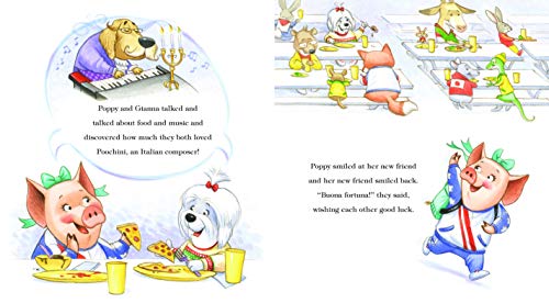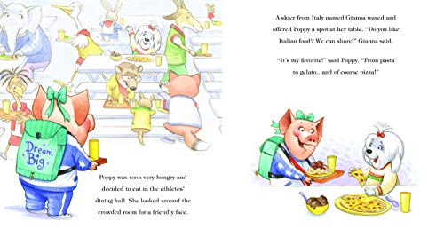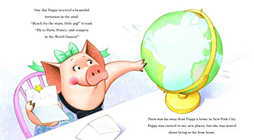 A New York Times Bestseller! Poppy, the adorable, persistent, dreaming-big pig, has a new adventure in store for her: the World Games ice-skating championship in Paris! Poppy is nervous about meeting so many new people in a new place. But, ever courageous and supported by her family (Emma, too!), Poppy embarks upon this exciting adventure head-on. She meets a snowboarding Panda, a Maltese who skies, and two fellow skaters, a Crane and a Kangaroo. Poppy begins to realize that although these animals look different, act different, and are from different places, they are all the same at heart. They all smile in the same language!