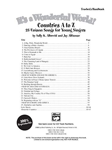 It’s a Wonderful World! Countries A to Z – 25 Unison Songs for Young Singers (Teacher’s Handbook & CD)