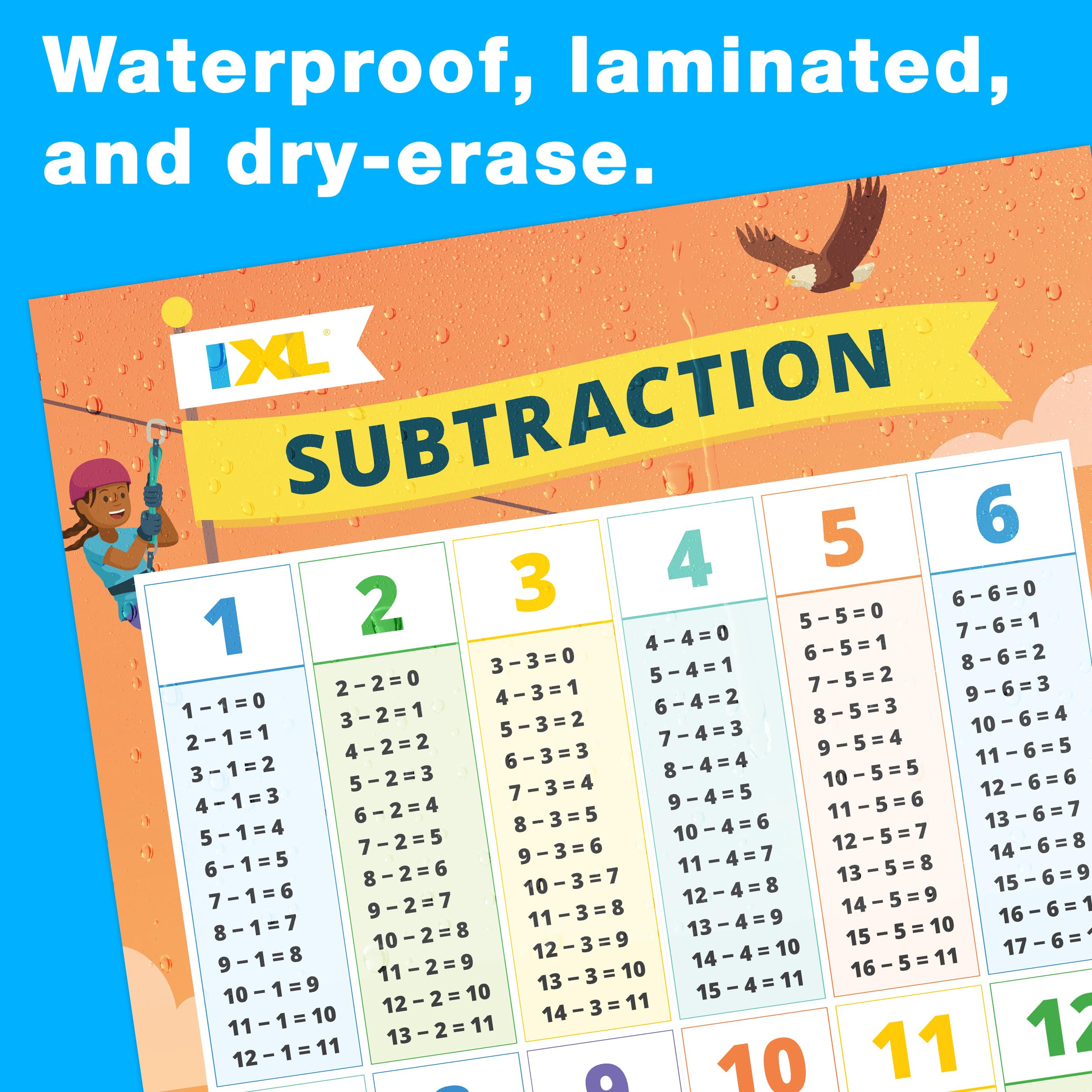 MUST-KNOW MATH SKILLS: IXL’s 4-Pack Math Posters feature essential addition, subtraction, multiplication, and division facts for numbers 1-12. Perfect for displaying at home or in the classroom, these eye-catching posters reinforce addition, subtraction, multiplication, and division facts to help students build confidence and speed while practicing math. DELIGHTFUL & FUN: Brighten up your learning space with these colorful math posters, featuring delightful illustrations and foundational math facts! The vibrant design will capture students’ attention and keep them engaged with learning. And each poster has waterproofed lamination, so you can use dry erase markers and make math more interactive! WHY IXL: IXL has been a trusted leader in education for over 25 years. Used by more than 15 million students worldwide and trusted by over 1 million teachers, IXL is the most popular online learning platform in the U.S. Backed by over 75 scientific studies, IXL’s comprehensive, curriculum-aligned K-12 program is proven to help every learner succeed. POSTER PACK CONTAINS: This poster pack contains four high-resolution, full-color posters, printed on 300g art paper with waterproof double-sided lamination, and sized at 18 x 24 inches.