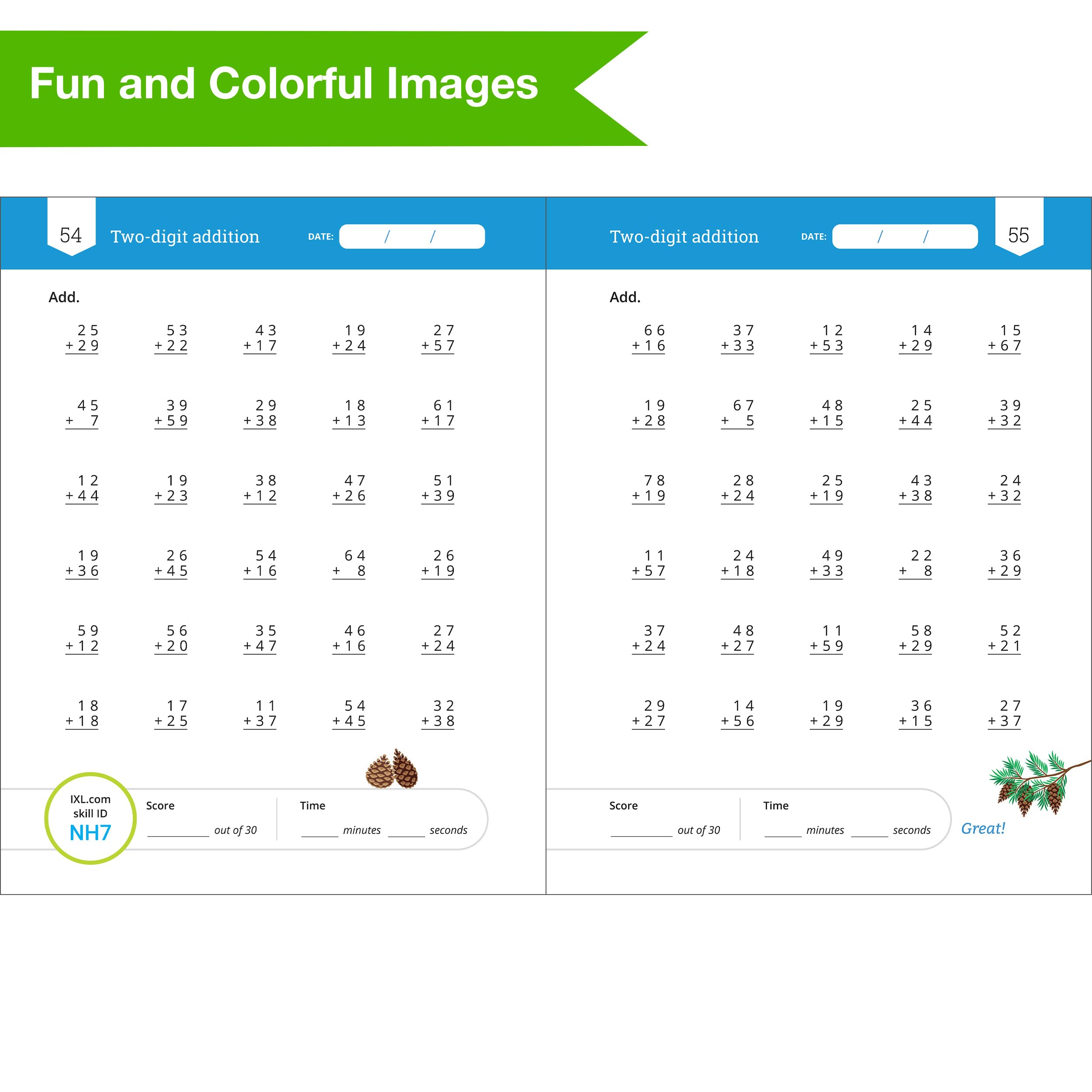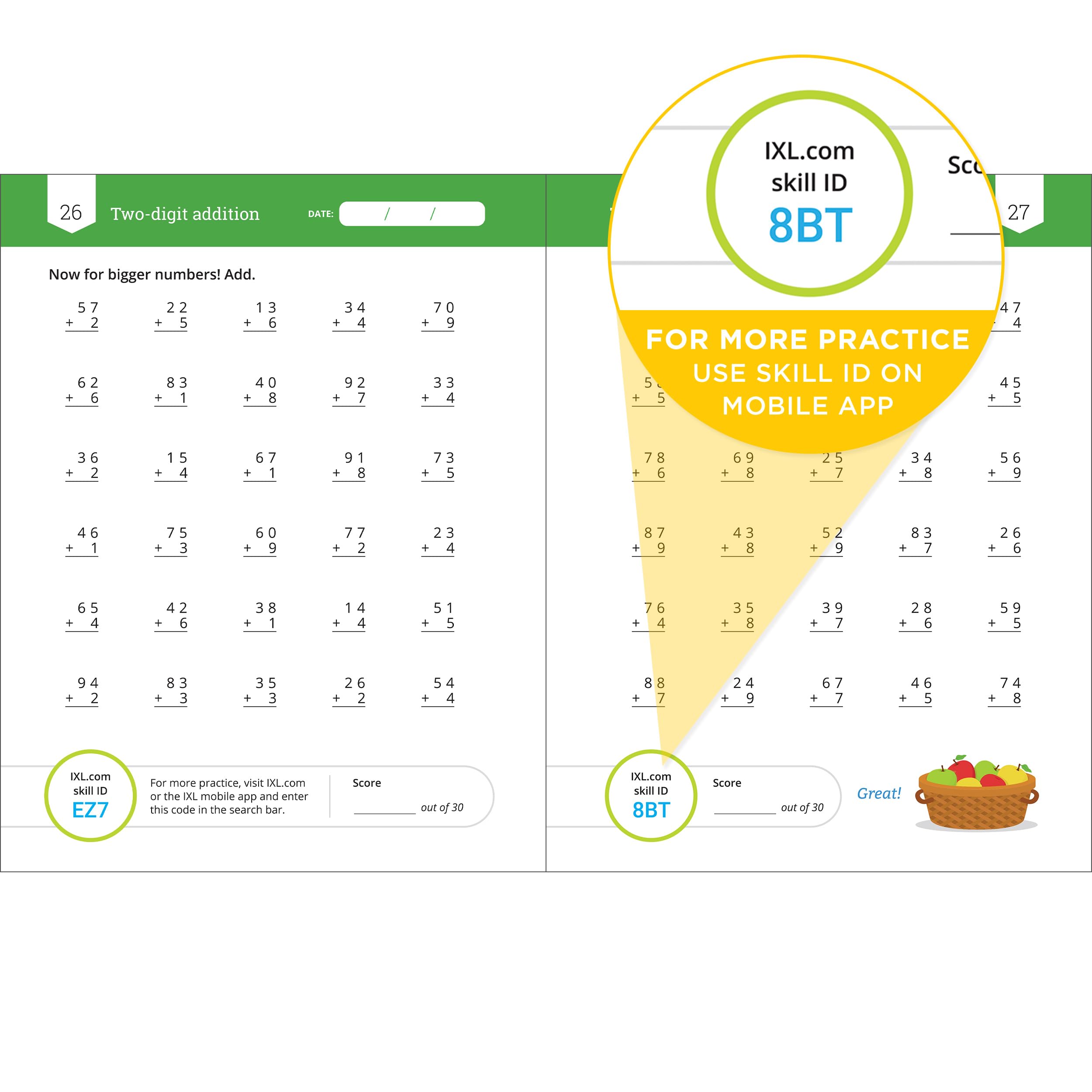 MUST-KNOW 2ND GRADE MATH SKILLS: Make your child an ace at addition with IXL’s Addition 2nd Grade Math Workbook! This 2nd grade workbook opens up a wonderful world of learning for your child while guiding them through must-know addition skills for second graders. Build your child’s excitement for learning and give them the gift of confidence in addition! DELIGHTFUL & FUN: Colorful pages bring math to life with thoughtfully crafted problems, vibrant illustrations, and a variety of delightful activities! PRACTICE ANYWHERE: This high-quality math workbook was created by mathematics experts so young learners can practice math wherever, whenever. Plus, connect your child to fun online practice by using your workbook with the IXL website or mobile app! Give your child the perfect blend of online and offline learning as you unlock extra questions, instant feedback, and even a growth plan tailored to them. WHY IXL: Trusted by over 1 million educators, and used in 96 of the top 100 school districts, IXL is proven to boost academic achievement. MATH BOOK CONTAINS: This is a 112-page second grade math workbook, printed on 70 lb Text Smooth paper, and sized at 8.5 in x 10.875 in.