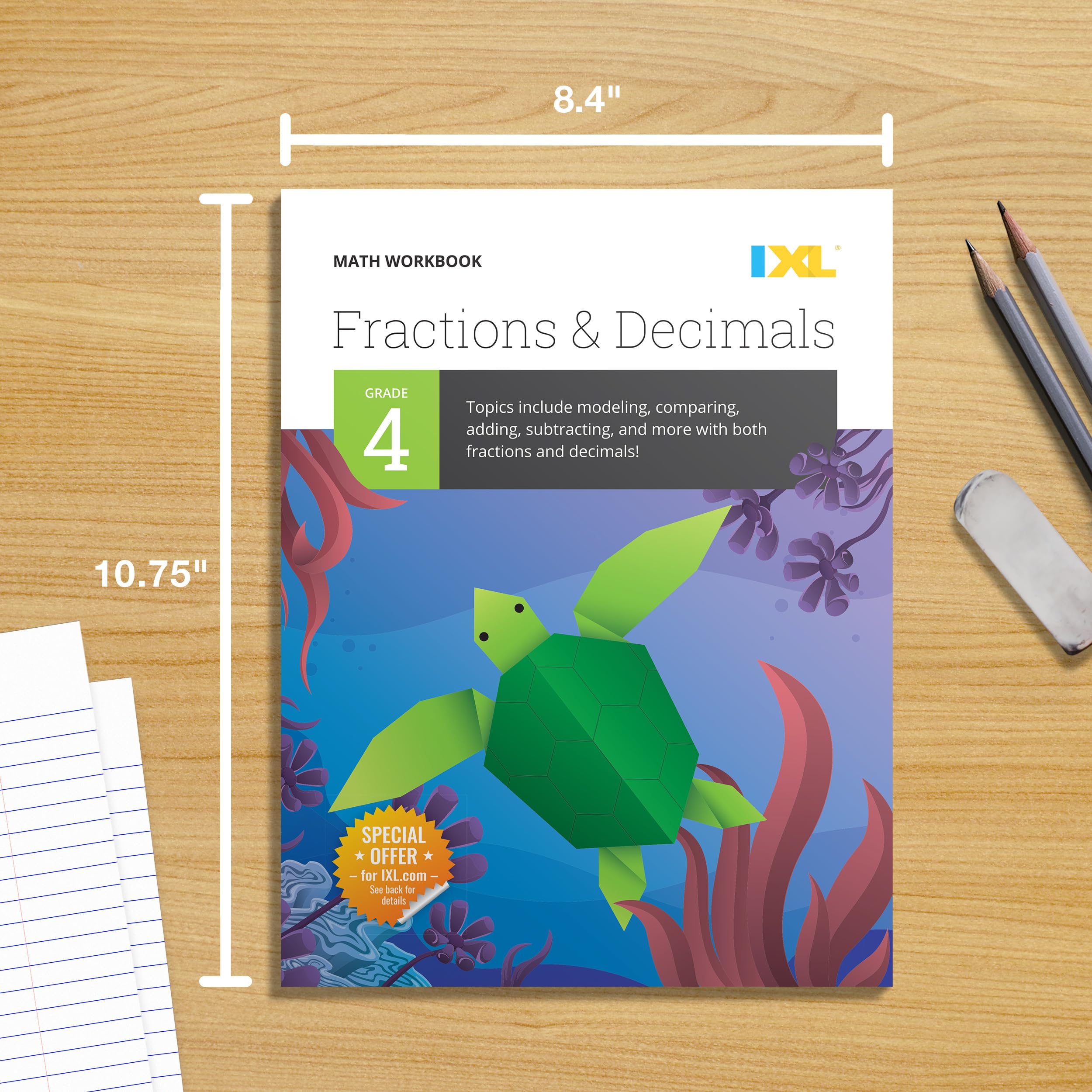IXL Fractions & Decimals 4th Grade Math Workbooks, Mathematics Book for Kids Age 9-10 Covering Modeling, Comparing, Addition, and Subtraction Problems