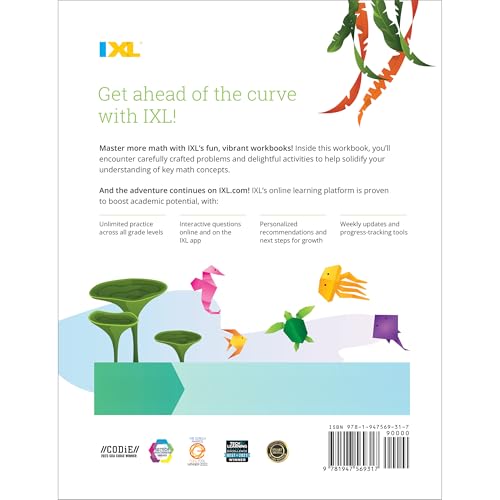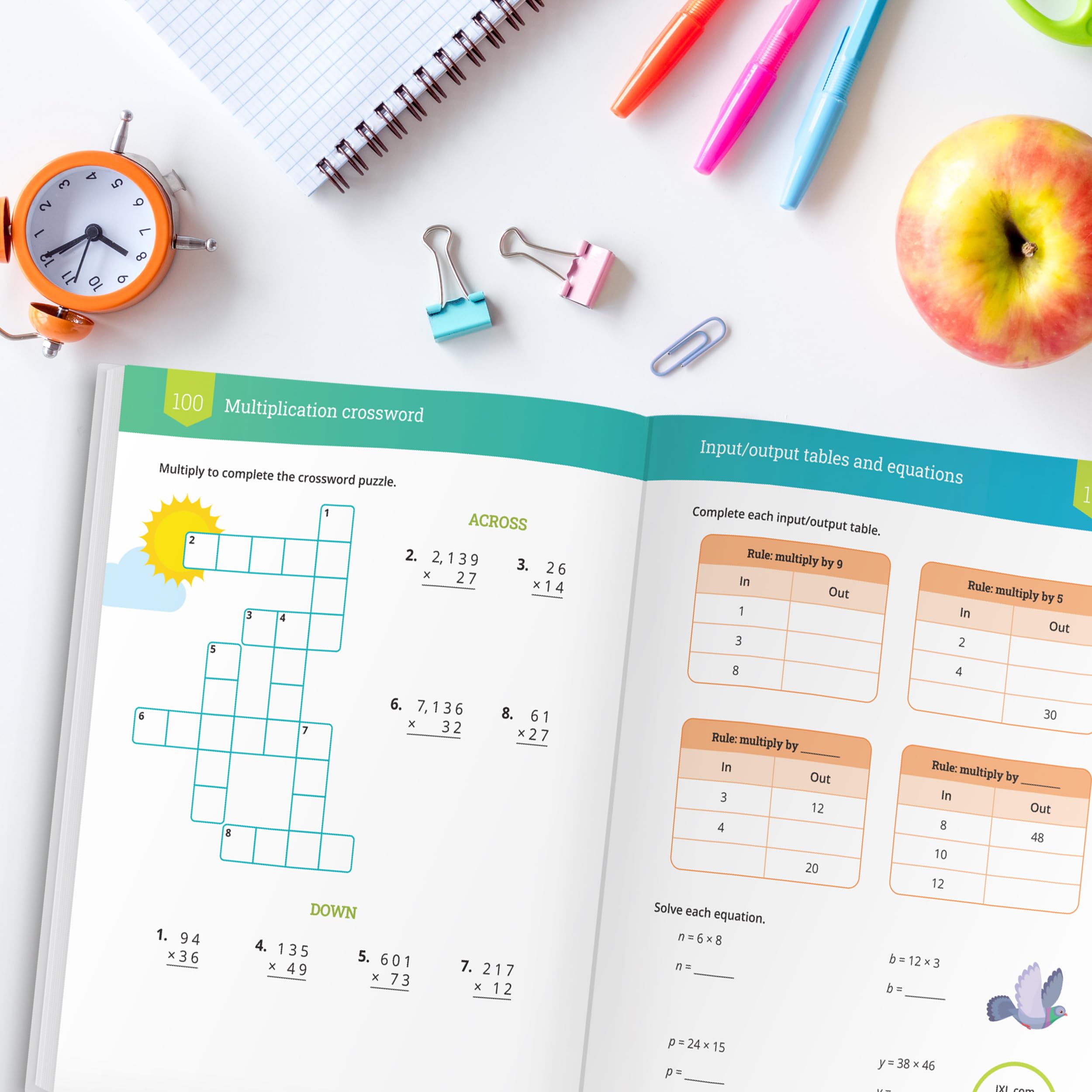 MUST-KNOW 4TH GRADE MATH SKILLS: Make your child marvelous at multiplication with IXL’s Multiplication 4th Grade Math Workbook! This multiplication workbook opens up a wonderful world of learning for your child while guiding them through must-know multiplication skills for third graders. Build your child’s excitement for learning and give them the gift of confidence in multiplication! DELIGHTFUL & FUN: Colorful pages bring math to life with thoughtfully crafted problems, vibrant illustrations, and a variety of delightful activities! PRACTICE ANYWHERE: These high-quality 4th grade math workbooks were created by mathematics experts so young learners can practice math wherever, whenever. Plus, connect your child to fun online practice by using your workbook with the IXL website or mobile app! Give your child the perfect blend of online and offline learning as you unlock extra questions, instant feedback, and even a growth plan tailored to them. WHY IXL: Trusted by over 1 million educators, and used in 96 of the top 100 school districts, IXL is proven to boost academic achievement. MATH BOOK CONTAINS: This is a 112-page 4th grade workbook, printed on 60 lb Text Smooth paper, and sized at 8.5 in x 10.875 in.