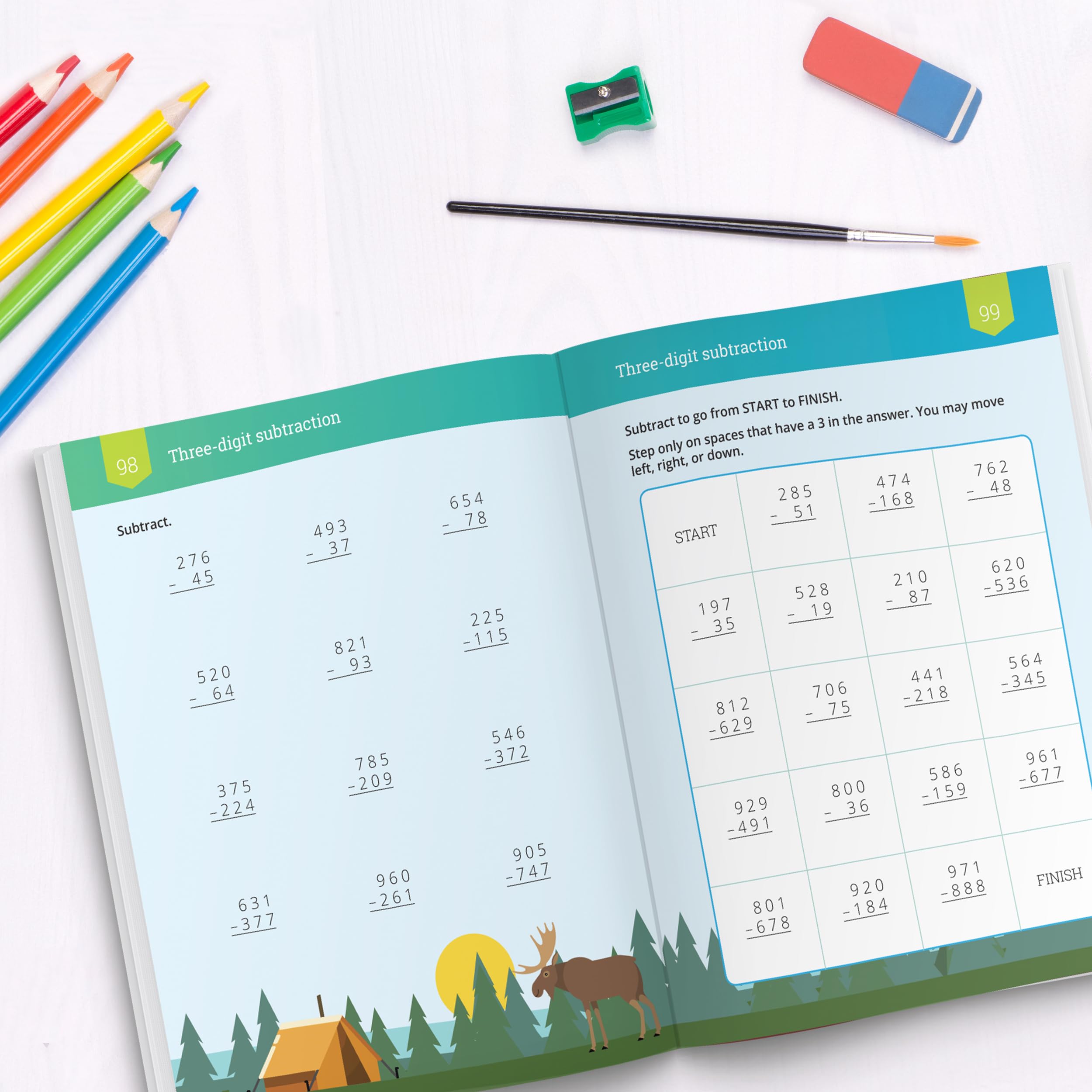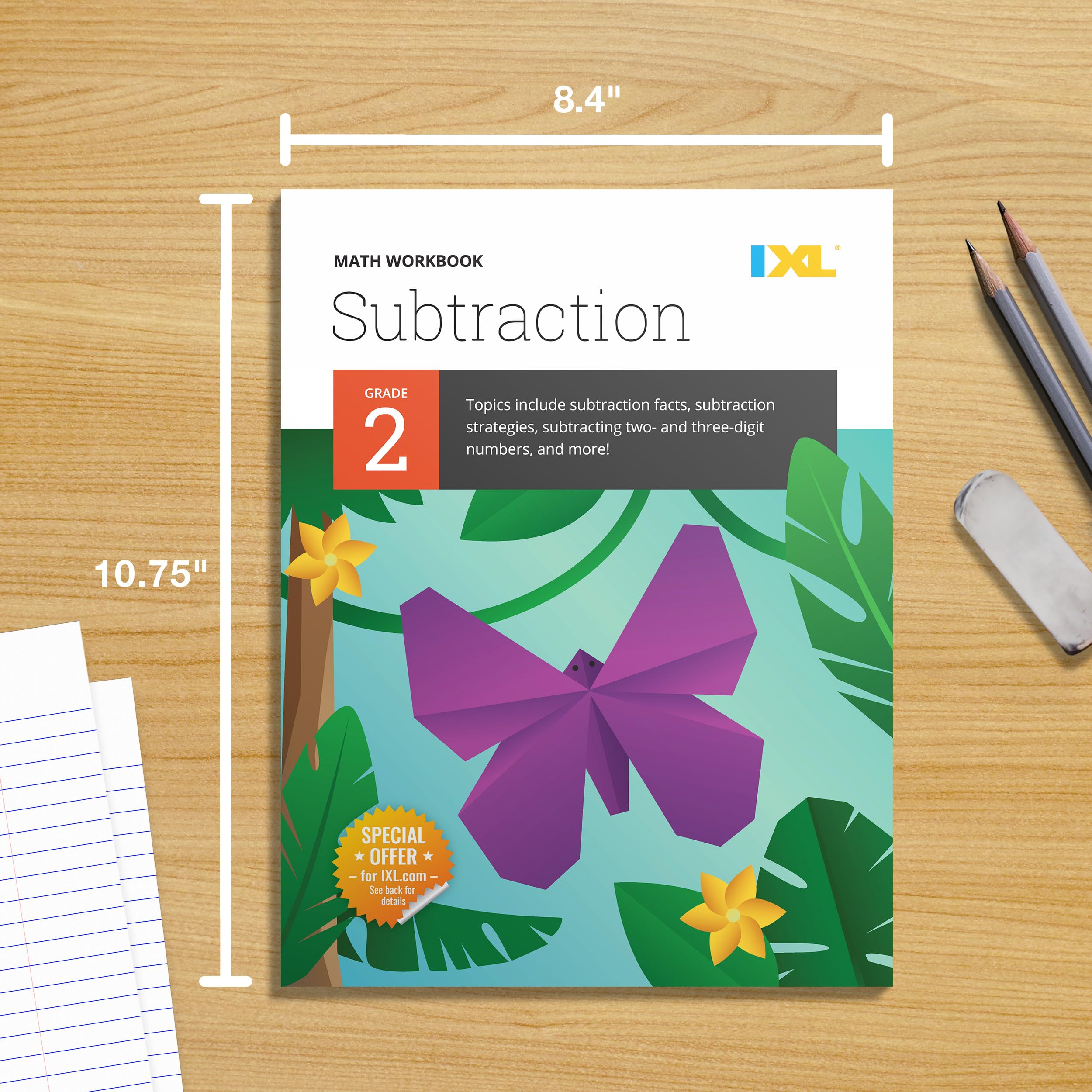 MUST-KNOW 2ND GRADE MATH SKILLS: Make your child superb at subtraction with IXL’s premium Subtraction 2nd Grade Math Workbook! This 2nd grade workbook opens up a wonderful world of learning for your child while guiding them through must-know subtraction skills for second graders. Build your child’s excitement for learning and give them the gift of confidence in subtraction! DELIGHTFUL & FUN: Colorful pages bring math to life with thoughtfully crafted problems, vibrant illustrations, and a variety of delightful activities! PRACTICE ANYWHERE: This high-quality math workbook was created by mathematics experts so young learners can practice math wherever, whenever. Plus, connect your child to fun online practice by using your workbook with the IXL website or mobile app! Give your child the perfect blend of online and offline learning as you unlock extra questions, instant feedback, and even a growth plan tailored to them WHY IXL: Trusted by over 1 million educators, and used in 96 of the top 100 school districts, IXL is proven to boost academic achievement. MATH BOOK CONTAINS: This is a 112-page second grade math workbook, printed on 60 lb Text Smooth paper, and sized at 8.5 in x 10.875 in.