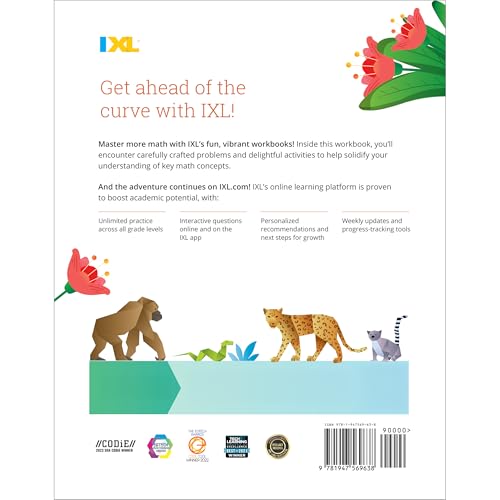 MUST-KNOW EIGHTH GRADE MATH SKILLS: IXL’s Ultimate 8th Grade Math Workbook opens up a wonderful world of learning for your child while guiding them through must-know math skills for eighth graders, ages 13-14. Give your child the gift of confidence in math and help them learn essential 8th grade topics, such as algebra prep, geometry, multi-step equations, functions, scientific notation, transformations, the Pythagorean Theorem, and more! DELIGHTFUL & FUN: Colorful pages bring math to life with thoughtfully crafted problems, vibrant illustrations, and a variety of delightful activities! PRACTICE ANYWHERE: These high-quality math books were created by mathematics experts so young learners can practice math wherever, whenever. Plus, connect your child to fun online practice by using your workbook with the IXL website or mobile app! Give your child the perfect blend of online and offline learning as you unlock extra questions, instant feedback, and even a growth plan tailored to them. WHY IXL: Trusted by over 1 million educators, and used in 96 of the top 100 school districts, IXL is proven to boost academic achievement. WIDE SPECTRUM OF 8TH GRADE MATH TOPICS: Your child will be mastering essential math and arithmetic skills including solving multi-step equations, word problems, square roots, cube roots, writing rational numbers as decimals, writing repeating decimals as fractions, approximating and comparing irrational numbers, evaluating exponents, the power rule, multiplying and dividing with exponents, negative and zero exponents, and scientific notation. This pre algebra workbook extensively covers proportional relationships, graphing lines using slope, finding missing coordinates, identifying y-intercepts, slope-intercept form, parallel and perpendicular lines, solving systems of linear equations using substitution and elimination, comparing linear functions, function intervals, and interpreting function relationships. Your teen will learn about transformations, reflections, rotations, translations, congruent figures, tessellations, dilations, scale factors, similar figures, angle relationships, transversals of parallel lines, interior and exterior angles of triangles, the Pythagorean theorem, distance between two points, and calculating the volume of cylinders, cones, and spheres. Your eighth grade student will learn about scatter plots, outliers, clusters, data sets, lines of best fit, and two-way frequency tables. MATH BOOK CONTAINS: This is a 224-page math workbook, printed on 60 lb Text Smooth paper, and sized at 8.5 in x 10.875 in