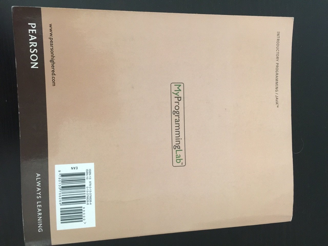 Note: You are purchasing a standalone product; MyProgrammingLab does not come packaged with this content. If you would like to purchase both the physical text and MyProgrammingLab search for ISBN-10: 0133862119/ISBN-13: 9780133862119. That package includes ISBN-10: 0133766268/ISBN-13: 9780133766264 and ISBN-10: 0133841030 /ISBN-13: 9780133841039. MyProgrammingLab is not a self-paced technology and should only be purchased when required by an instructor. Java: An Introduction to Problem Solving and Programming, 7e, is ideal for introductory Computer Science courses using Java, and other introductory programming courses in departments of Computer Science, Computer Engineering, CIS, MIS, IT, and Business. It also serves as a useful Java fundamentals reference for programmers. Students are introduced to object-oriented programming and important concepts such as design, testing and debugging, programming style, interfaces inheritance, and exception handling. The Java coverage is a concise, accessible introduction that covers key language features. Objects are covered thoroughly and early in the text, with an emphasis on application programs over applets. MyProgrammingLab for Java is a total learning package. MyProgrammingLab is an online homework, tutorial, and assessment program that truly engages students in learning. It helps students better prepare for class, quizzes, and exams-resulting in better performance in the course-and provides educators a dynamic set of tools for gauging individual and class progress. Teaching and Learning Experience This program presents a better teaching and learning experience–for you and your students. Personalized Learning with MyProgrammingLab: Through the power of practice and immediate personalized feedback, MyProgrammingLab helps students fully grasp the logic, semantics, and syntax of programming. A Concise, Accessible Introduction to Java: Key Java language features are covered in an accessible manner that resonates with introductory programmers. Tried-and-true Pedagogy: Numerous case studies, programming examples, and programming tips are used to help teach problem-solving and programming techniques. Flexible Coverage that Fits your Course: Flexibility charts and optional graphics sections allow instructors to order chapters and sections based on their course needs. Instructor and Student Resources that Enhance Learning: Resources are available to expand on the topics presented in the text.