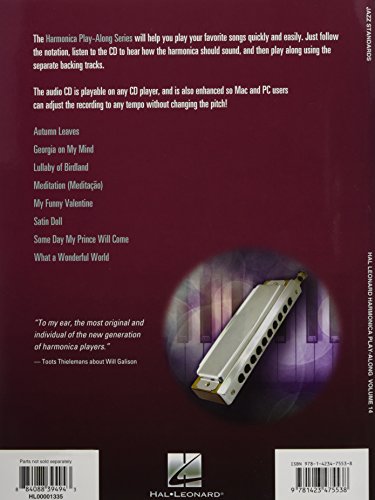 (Harmonica Play-Along). The Harmonica Play-Along Series will help you play your favorite songs quickly and easily. Just follow the notation, listen to the CD to hear how the harmonica should sound, and then play along using the separate backing tracks. The audio CD is playable on any CD player, and also enhanced so PC and Mac users can adjust the recording to any tempo without changing pitch! Volume 10 features chromatic harmonica arrangements by Will Galison of: Autumn Leaves * Georgia on My Mind * Lullaby of Birdland * Meditation (Meditacao) * My Funny Valentine * Satin Doll * Some Day My Prince Will Come * What a Wonderful World. “To my ear, Will Galison is the most original and individual of the new generation of harmonica players.” Toots Thielemans