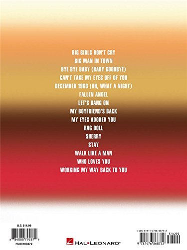 (Easy Piano Vocal Selections). Easy piano arrangements of 15 tracks from the hit Broadway musical, including: Big Girls Don’t Cry * Can’t Take My Eyes off of You * December 1963 (Oh, What a Night) * My Boyfriend’s Back * Rag Doll * Sherry * Walk like a Man * Working My Way Back to You * and more.