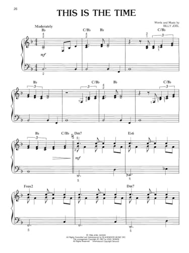 (Easy Piano Personality). Behold the Billy Joel piano music book with 21 memorable hits, arranged for easy piano. This piano sheet music book includes the songs: Baby Grand, Just the Way You Are, Piano Man, Leave a Tender Moment Alone, and 16 more.