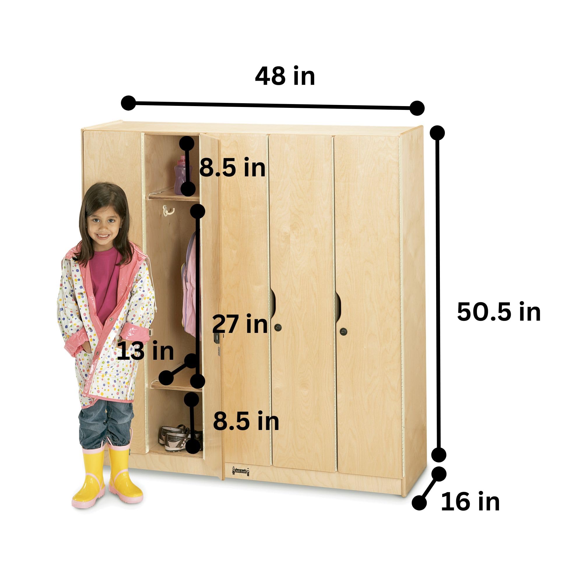 - LARGE STORAGE CAPACITY – Our Section Locker with Doors features 5 sections. Each section has 2 double coat hooks and two shelves. It’s perfect for storing coats, jackets, backpacks, shoes, boots, supplies, lunchboxes, and more.