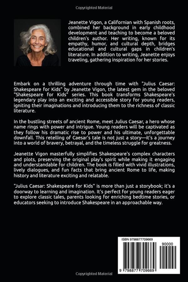 Imagine a world where the whispers of ancient Rome come alive, where intrigue and bravery shape the destiny of empires. Jeanette Vigon’s adaptation brings the monumental story of “Julius Caesar” to young readers, transforming Shakespeare’s historical drama into an unforgettable adventure. This thrilling adaptation preserves the essence of the classic tale while making it accessible to children through simplified language and engaging storytelling. Experience the drama, intrigue, and lessons of loyalty, betrayal, and the consequences of power as young minds explore the complexities of one of history’s most pivotal moments. “Julius” offers a unique opportunity for children to engage with historical literature, fostering a love for reading and an appreciation for Shakespeare’s work from an early age. Accessible and Engaging: Simplified language and storytelling tailored for young readers. Educational Value: Introduces important historical and literary themes in an approachable manner. Moral Lessons: Explores timeless themes of loyalty, betrayal, and the dynamics of power. “Julius” is not just a story; it’s a bridge to history, literature, and critical thinking for the next generation. Invite your children to journey back in time and discover the intrigue and lessons of ancient Rome through the eyes of its most famous characters.