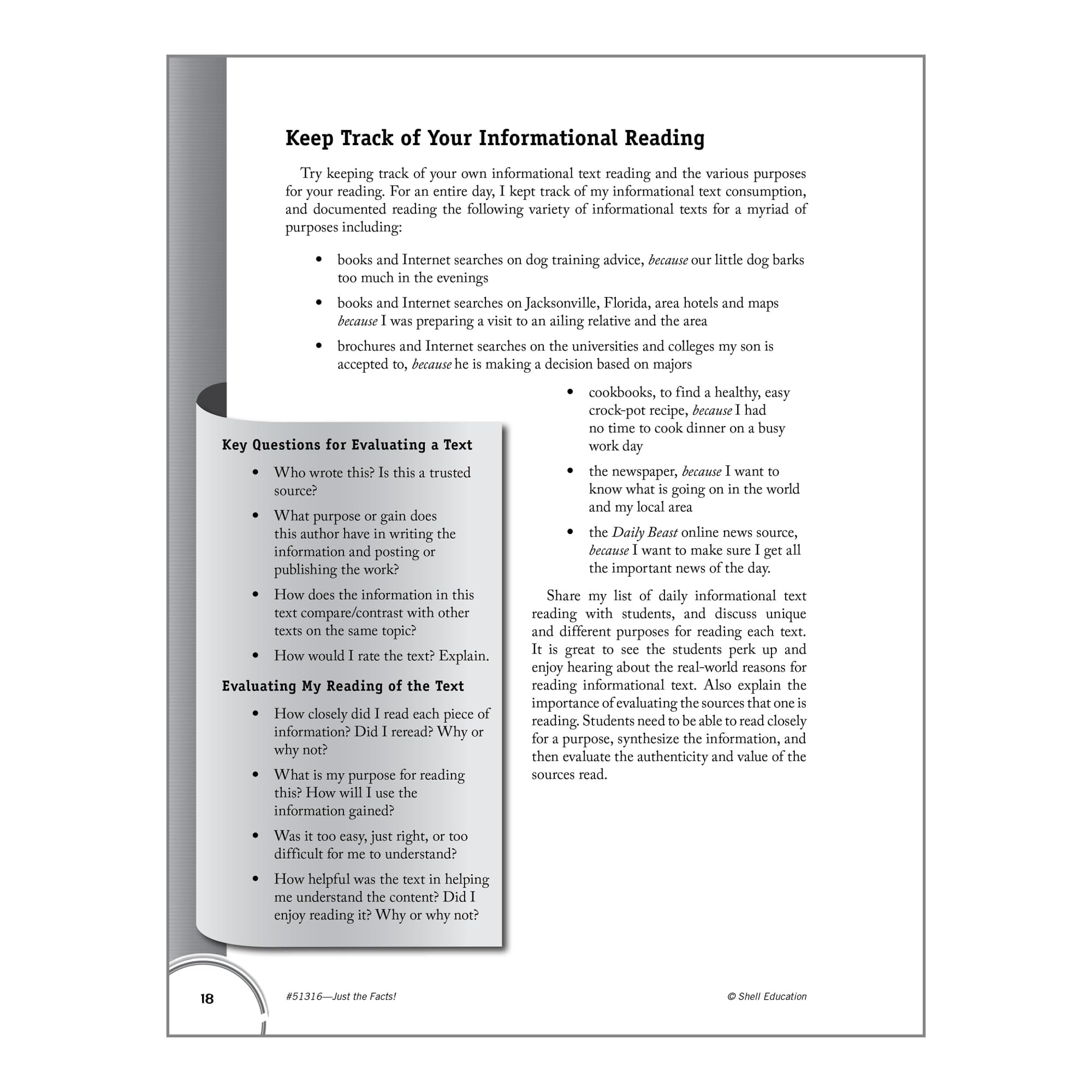 - Shell Just the Facts: Close Reading and Comprehension of Informational Text Education Printed Book by Lori Oczkus