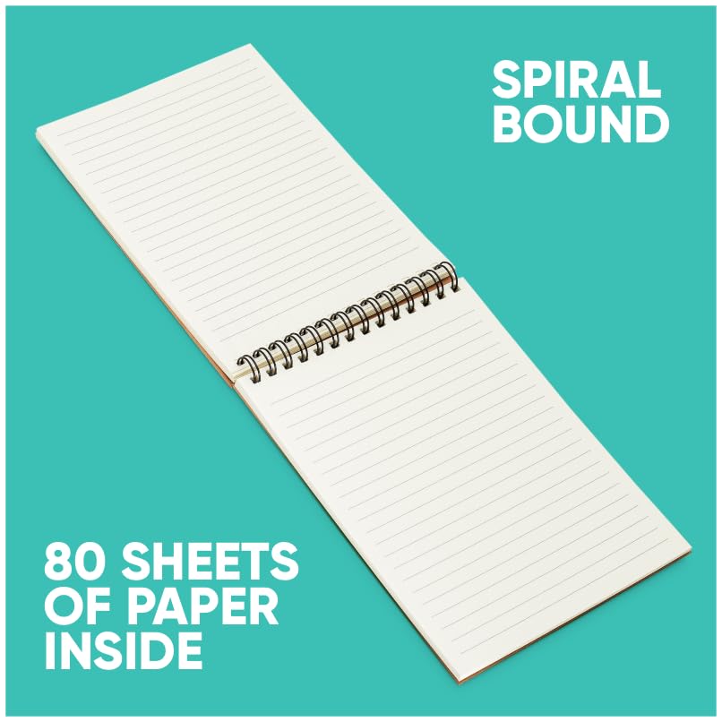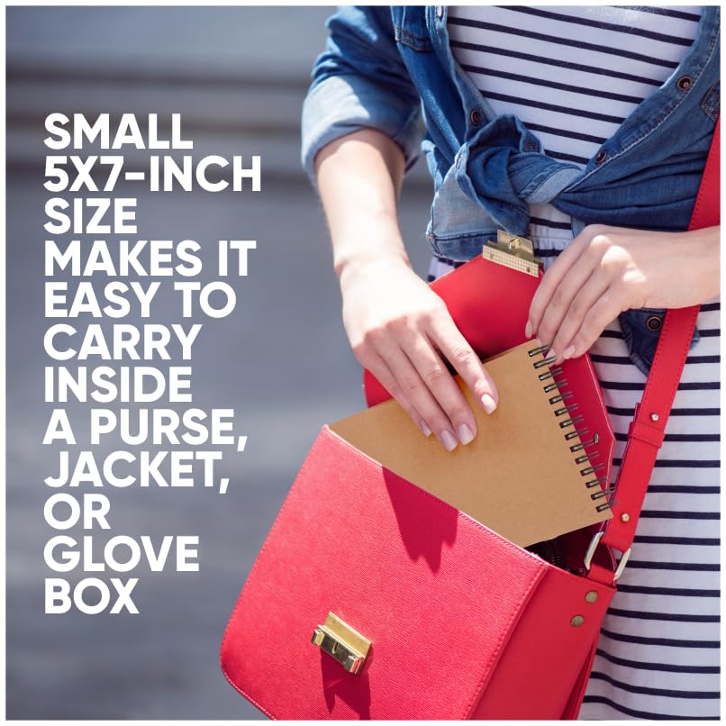 - Handy Size: This small 5 x 7-inch notebook features a spiral binding, allowing for easy notetaking and flipping between pages. The 5×7-inch size makes it easy to carry inside a purse, jacket, packet, or glove box.
