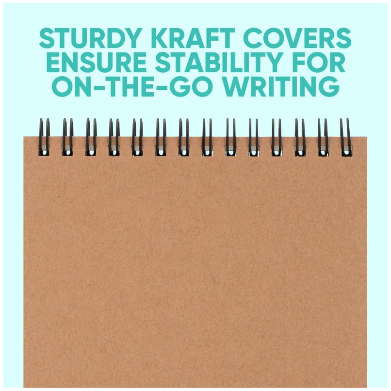 - Kraft Paper Covers: Each notepad features sturdy front and back Kraft paper covers, ensuring the paper stays intact, even with frequent on-the go usage. The sturdy covers provide stable platform for on-the-go writing when a hard surface or table is not available.