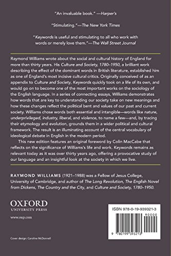 First published in 1976, Raymond Williams’ highly acclaimed Keywords: A Vocabulary of Culture and Society is a collection of lively essays on words that are critical to understanding the modern world. In these essays, Williams, a renowned cultural critic, demonstrates how these key words take on new meanings and how these changes reflect the political bent and values of our past and current society. He chose words both essential and intangible–words like nature, underprivileged, industry, liberal, violence, to name a few–and, by tracing their etymology and evolution, grounds them in a wider political and cultural framework. The result is an illuminating account of the central vocabulary of ideological debate in English in the modern period. This edition features a new original foreword by Colin MacCabe, Distinguished Professor of English and Literature, University of Pittsburgh, that reflects on the significance of Williams’ life and work. Keywords remains as relevant today as it was over thirty years ago, offering a provocative study of our language and an insightful look at the society in which we live.