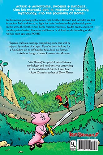 Book 4 in the Kid Beowulf series. In this action-packed graphic novel, twin brothers, Beowulf and Grendel, are lost in ancient Italy and forced to fight for their freedom in the gladiatorial games. In the arena the brothers will battle fearsome warriors, deadly beasts, and meet another pair of twins, Romulus and Remus. It all leads to the founding of the world’s most epic city: ROME! Synopsis Twin brothers, Beowulf and Grendel, are lost in ancient Italy and forced to fight for their freedom in the gladiatorial games. In the arena the brothers will discover a part of themselves neither knew existed and the fighter and the monster will emerge. Meanwhile in the Tiber River Valley among the Seven Hills, two tribes are at odds: the high-born Sabines who have made the land their own and the poor Latin farmers who are forced to till it. Compelled toward change, a young Latin girl named Tarpeia incites a revolution no one is ready for, particularly the pair chosen to lead it: twin brothers, Romulus and Remus. Action and adventure. Swords and sandals. The newest Kid Beowulf graphic novel is inspired by history, mythology, and the founding of ROME! Inspired by the epic poem BEOWULF, Kid Beowulf is an action-adventure graphic novel series following the adventures of 12-year-old twin brothers, Beowulf and Grendel as they travel across distant lands and meet fellow epic heroes therein! The Tarpeian Rock is the fourth book in the ongoing series. The series is ideal for fans of Bone, Wings of Fire, and Avatar: The Last Airbender.