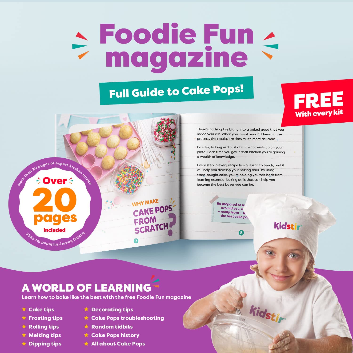 - A WORLD OF LEARNING: Pick up dozens of cooking with kids tips as we guide you step-by-step through your cake pop maker adventure. Kidstir makes baking for kids so fun and yum! This will be your best gifts for family with kids and for a gifts for girls 8-10
