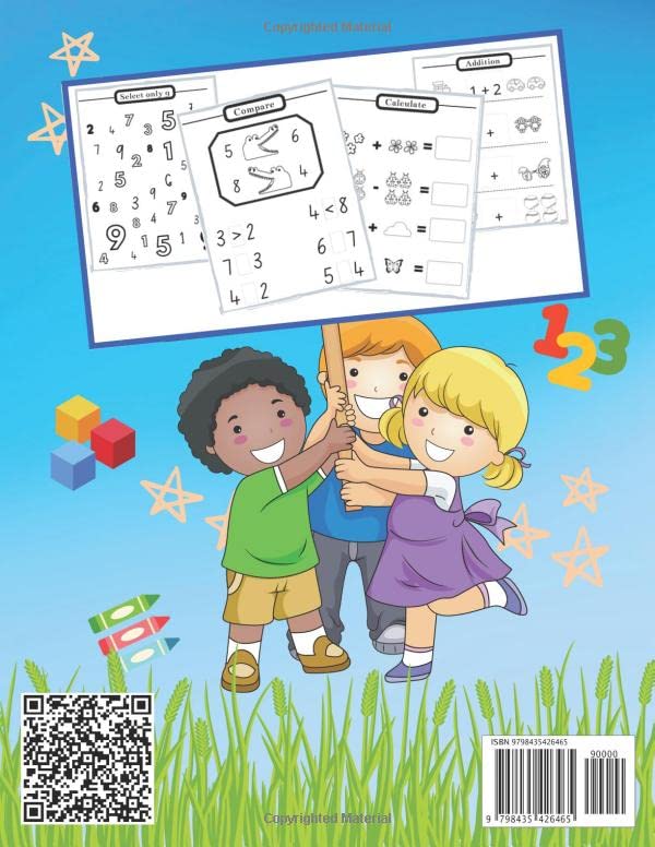 Kindergarten math activity workbook for kids ages 3-6: First homework teach handwriting, writing numbers, learning adding, subtracting. Educational kinder and toddler mathematics. Preschoolers at home