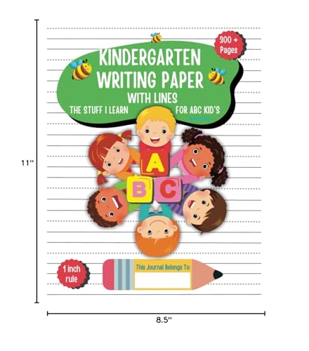 Kindergarten Writing Paper With Lines For ABC Kids: Blank Handwriting Practice Paper with Dotted Lines: The Stuff I Learn – Paper Size 8.5×11 Inches – 1 Inch Rule – 300 Pages