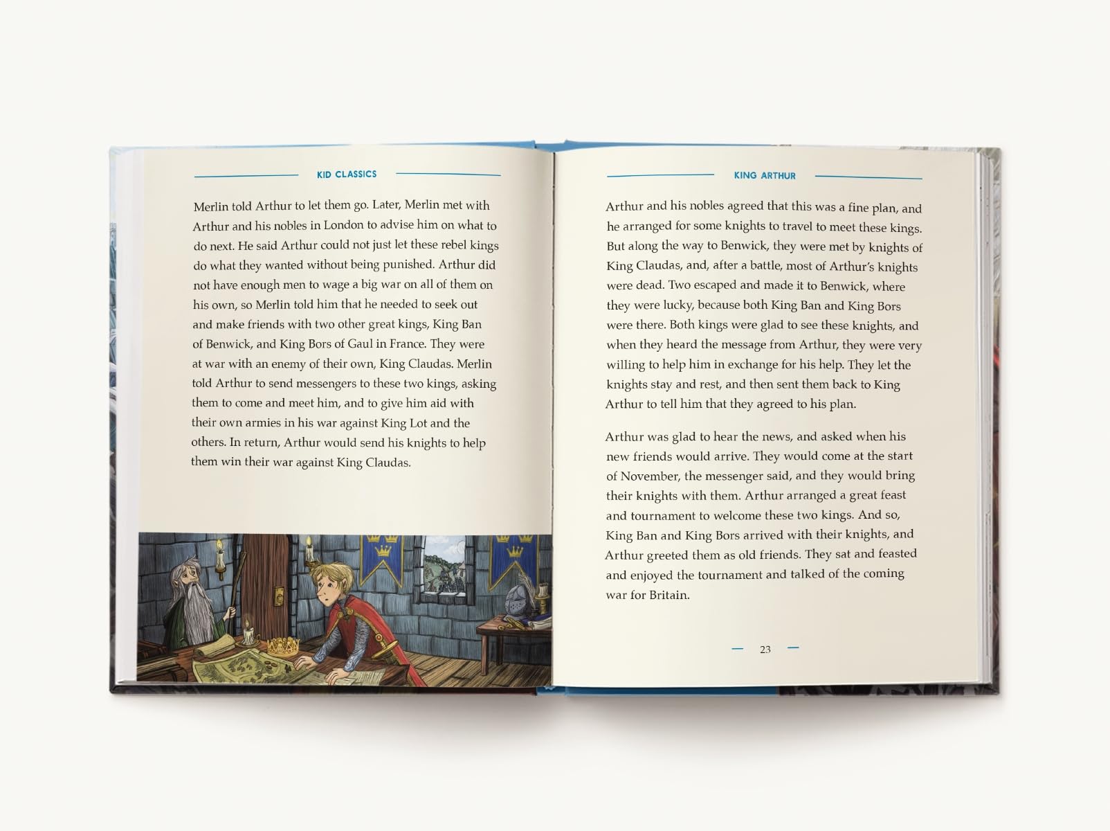 Now the enchanting tales of King Arthur’s Camelot are an illustrated chapter storybook perfect for young readers! Thousands upon thousands of years ago, Welsh and English folklore told of an unusually brave, kind, and fair leader named King Arthur who protected his people from Saxon invaders in the fifth century. Medieval author Sir Thomas Malory collected, translated, and retold the folktales of King Arthur in his 1485 book Le Morte d’Arthur, which remains one of the most famous books of Arthurian legend to this day. Kid Classics: King Arthur is the thrilling new just-for-kids edition of the classic tales of King Arthur, abridged and retold for modern kids while staying true to the original Arthurian legends. It’s a story you can’t put down: Merlin guides young Arthur Pendragon to claim his throne as King of the Britons by pulling the sword Excalibur from the stone, and fantastical adventures ensue! Arthur nearly loses Excalibur to the Lady of the Lake, befriends Sir Lancelot, falls in love with Guinevere, and calls the best knights of the realm to join him at the Round Table, a place where fairness is paramount, and everyone has an equal say. With page after page of captivating illustrations, this magical hardcover will be the fought over favorite in your home and schoolroom! This just-for-kids retelling of Sir Thomas Malory classic King Arthur: Is an abridged, child-friendly version of the original Arthurian folklore Has just the right amount of magic and daring deeds Features beautiful illustrated hardcover with illustrations in each chapter Is perfect for homeschooling, school reading challenges, and beginning readers