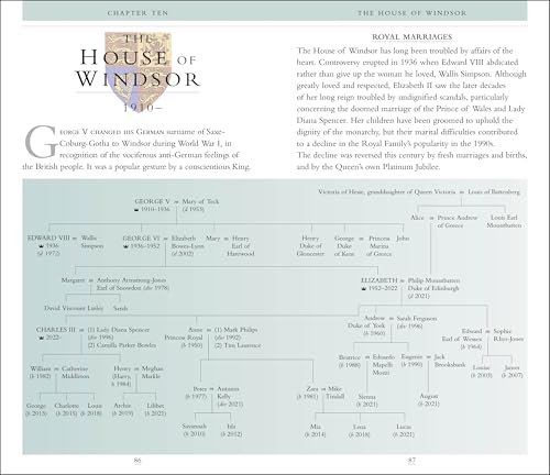 Discover the vivid stories of Britain’s iconic rulers, from 600 CE to the present day. From the Saxons to the Windsors, Britain’s royal lineage is brought to life in the pages of this visual guide. Confused about which Henry had six wives and which was crowned at the age of eight? Kings and Queens of England and Scotland documents the public and private lives of the royal dynasties. Year-by-year chronologies reveal the major events of each monarch’s reign, while family trees trace the royal lineage and claim to the throne of each royal house. This new edition features recent royal events, including the passing of Queen Elizabeth II, and a biography of King Charles III. With crisp biographies of each sovereign, illustrated with contemporary portraits, painting, or statues. Kings and Queens of England and Scotland is an essential handy reference for all history buffs, and includes the following: – Accessible guide to the monarchs of both England and Scotland with extensive royal history distilled into a handy, compact format. – Concise summaries of every English sovereign from Alfred the Great and his Saxon ancestors to King Charles III. – Family tree for each of the royal houses. – Contemporary portraits, paintings, or photographs with each monarch’s profile. – Concise bullet-point summaries of key events in each monarch’s reign. The ideal history book for history buffs of all ages, whether you are or know of a fan of royal history, or looking for the perfect gift book for history students – Kings and Queens of England and Scotland is your go-to guide for a complete history of the monarchy.