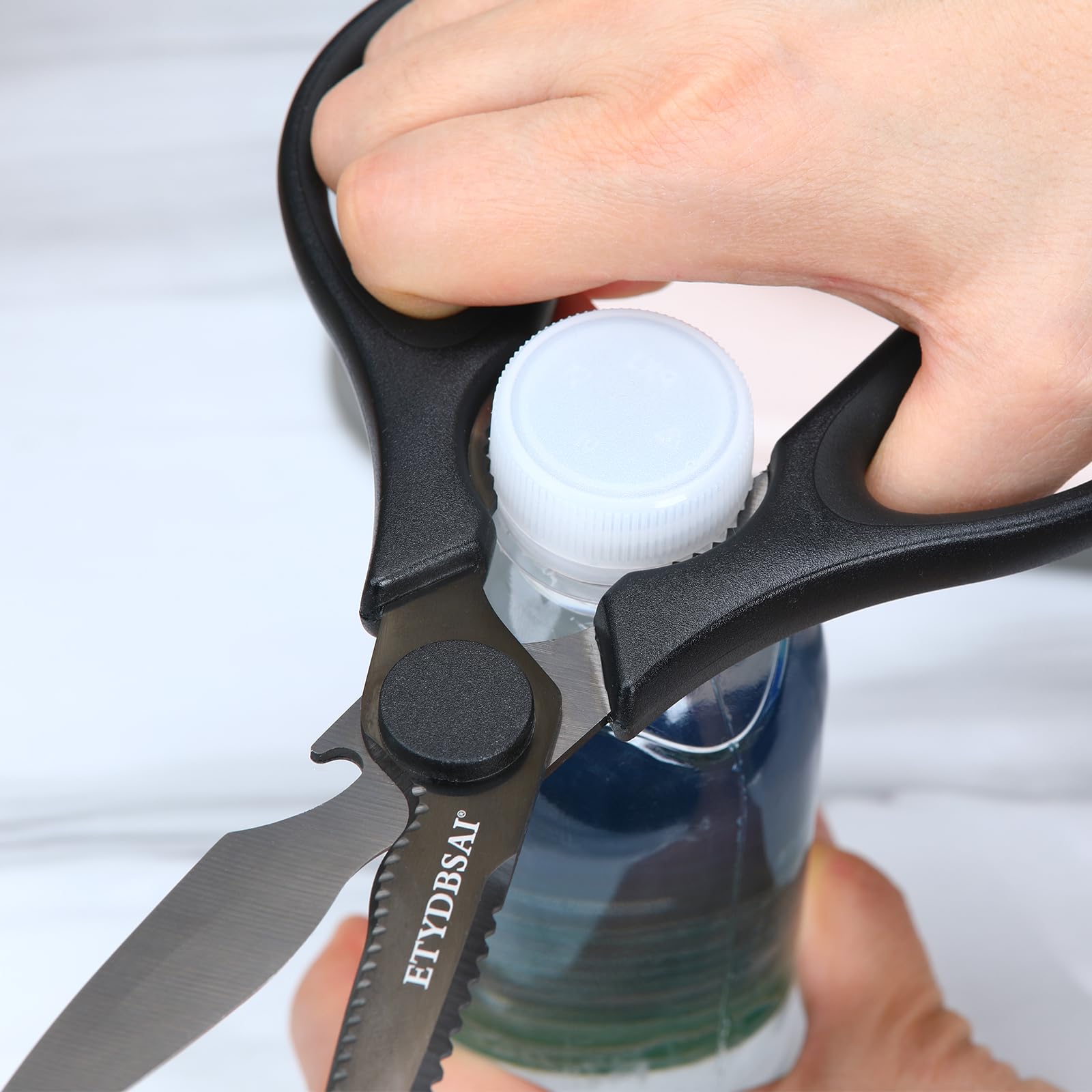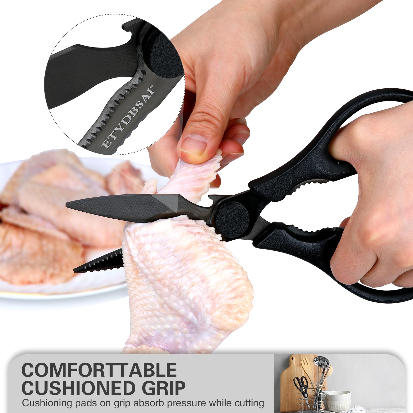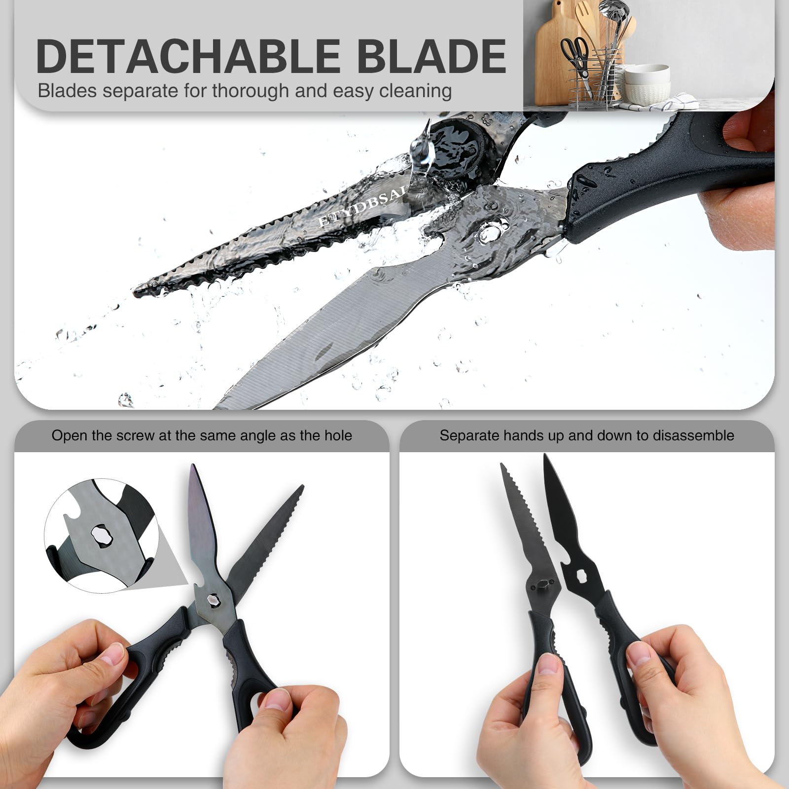Kitchen Scissors All Purpose for Food, Kitchen Shears that Come Apart Dishwasher Safe, Heavy Duty Sharp Stainless Steel Cooking Scissors for Meat, Titanium Plated Black