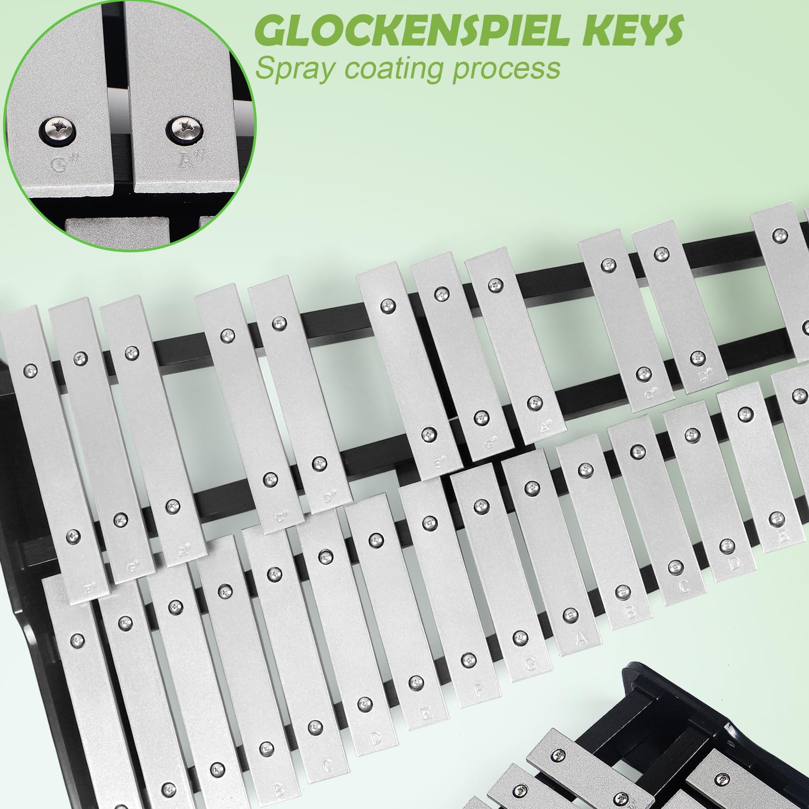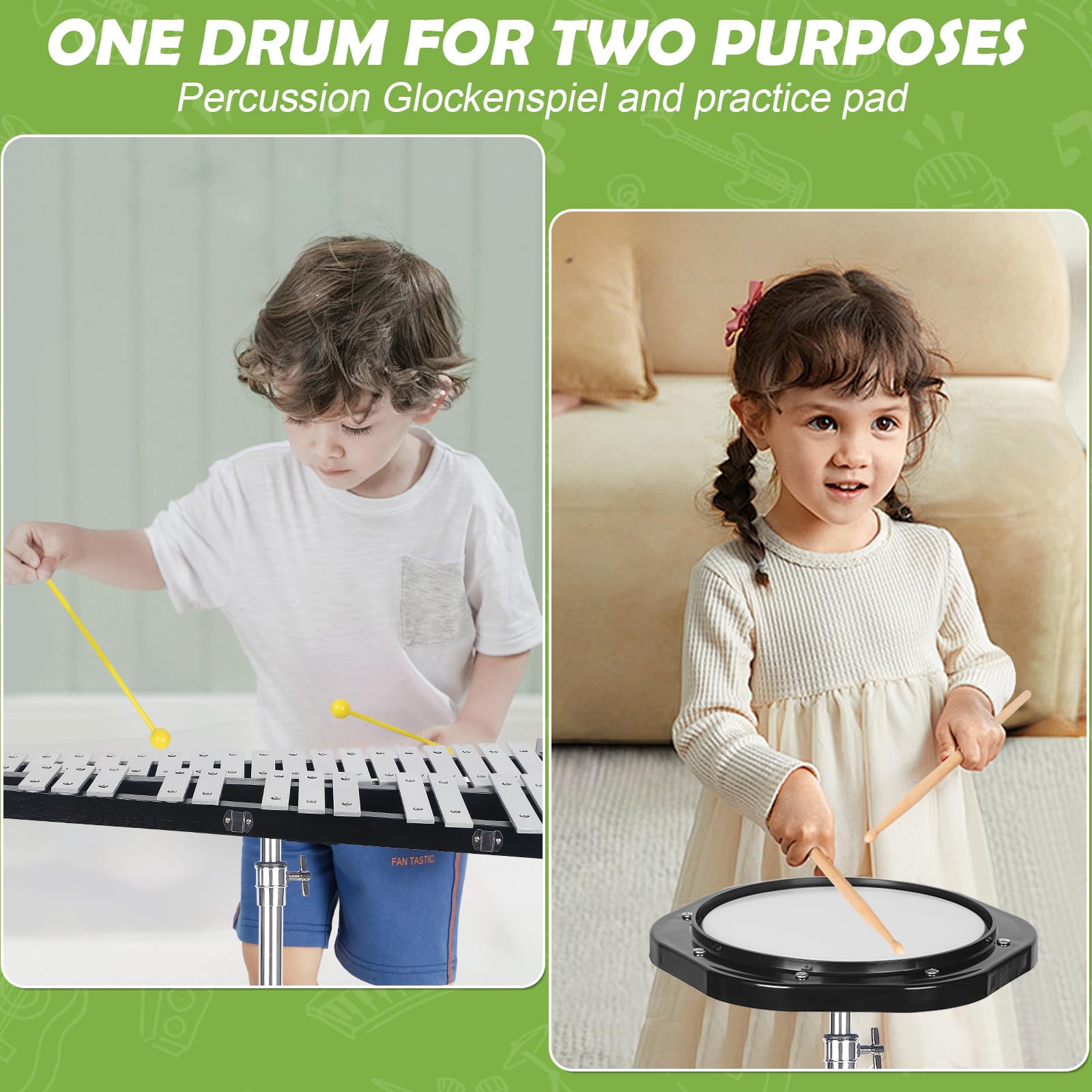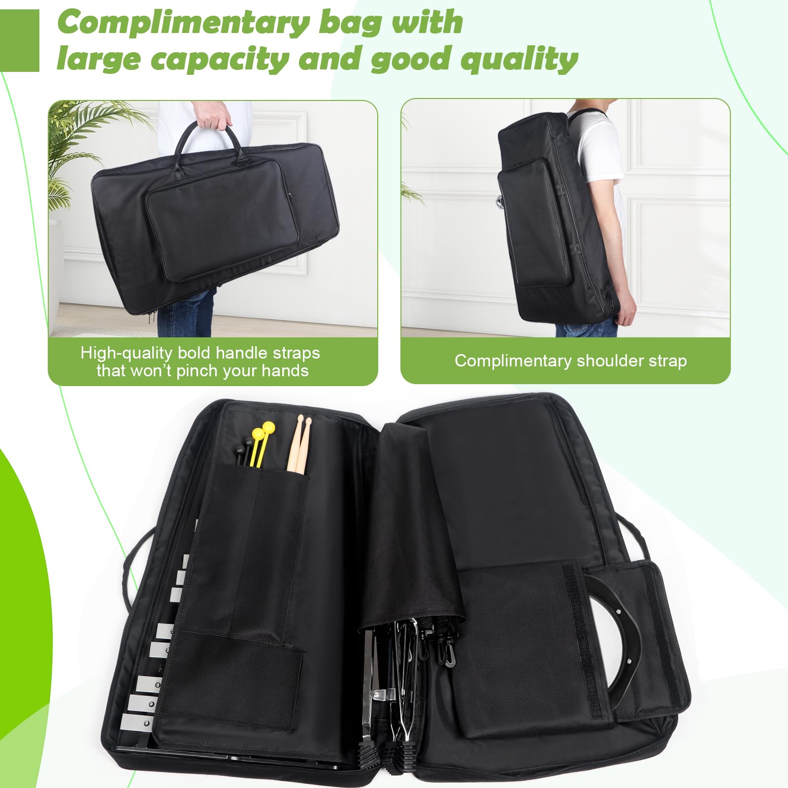 • [(Many Accessories)] Glockenspiel xylophone is equipped with an 8-inch silent drum, 3 sets of drumsticks, a high-quality black bag, and a height-adjustable stand.