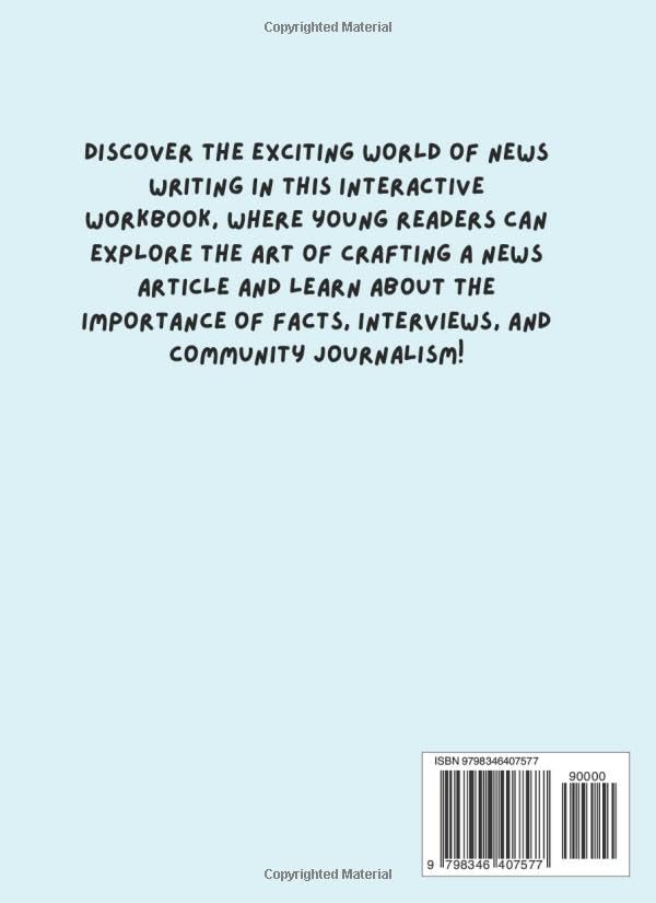 Discover the exciting world of news writing in this interactive workbook, where young readers can explore the art of crafting a news article and learn about the importance of facts, interviews, and community journalism!