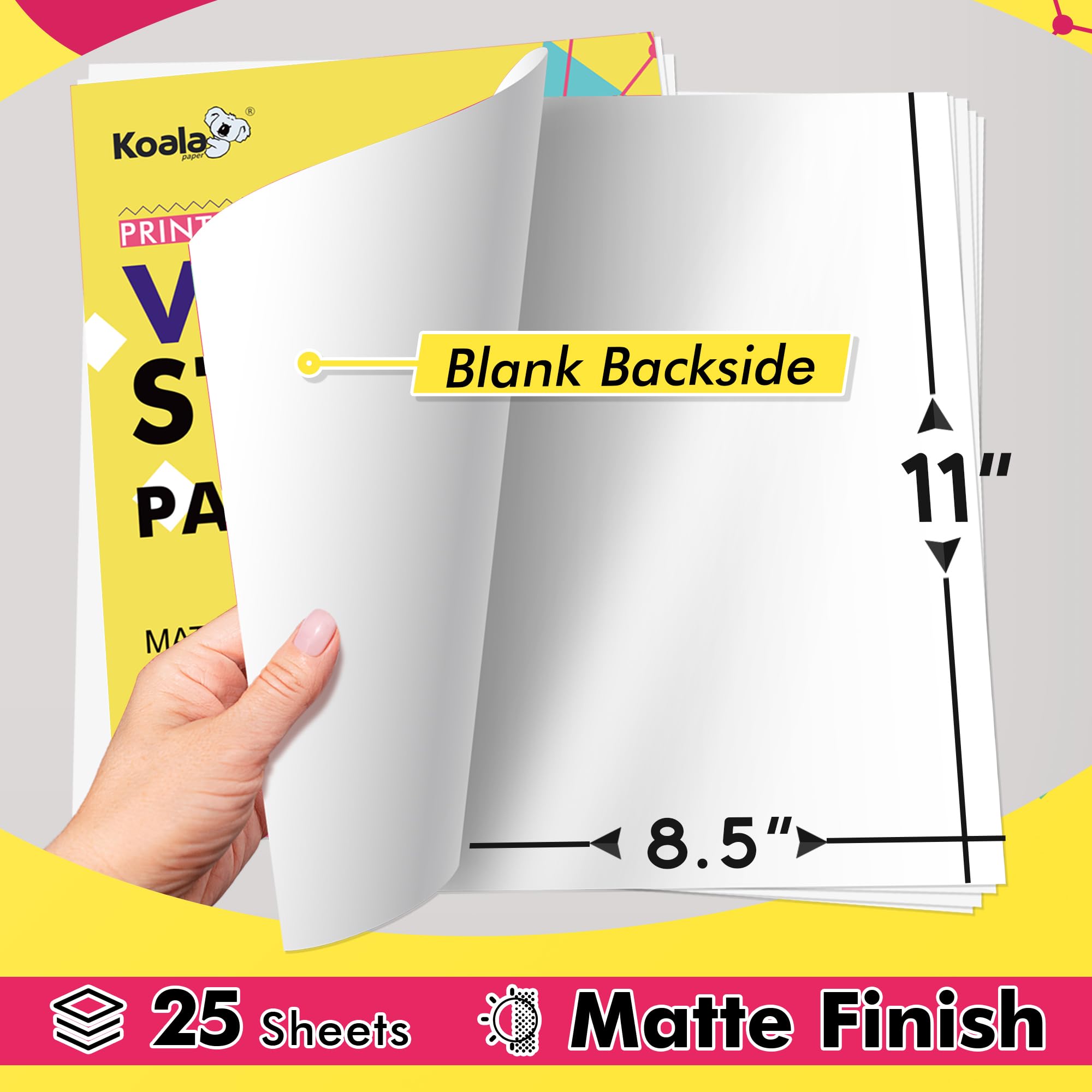 Koala Printable Vinyl Sticker Paper for Inkjet & Laser Printer - 25 Sheets Matte White Waterproof Sticker Paper, Fast Dry, Vivid Colors, Great for Cutting Machines