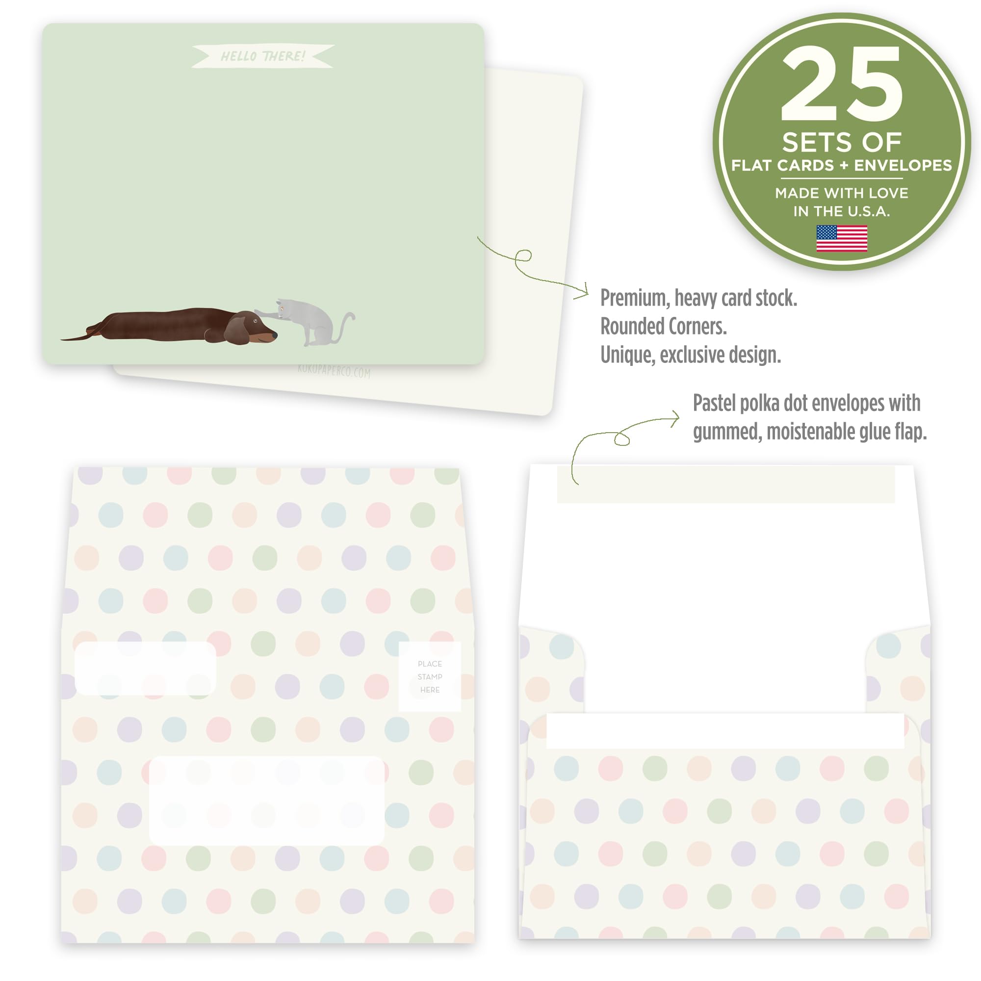 - 25 Cards + 25 Envelopes: All-purpose flat note cards with rounded corners. All envelopes come with gummed/moistenable glue flaps.