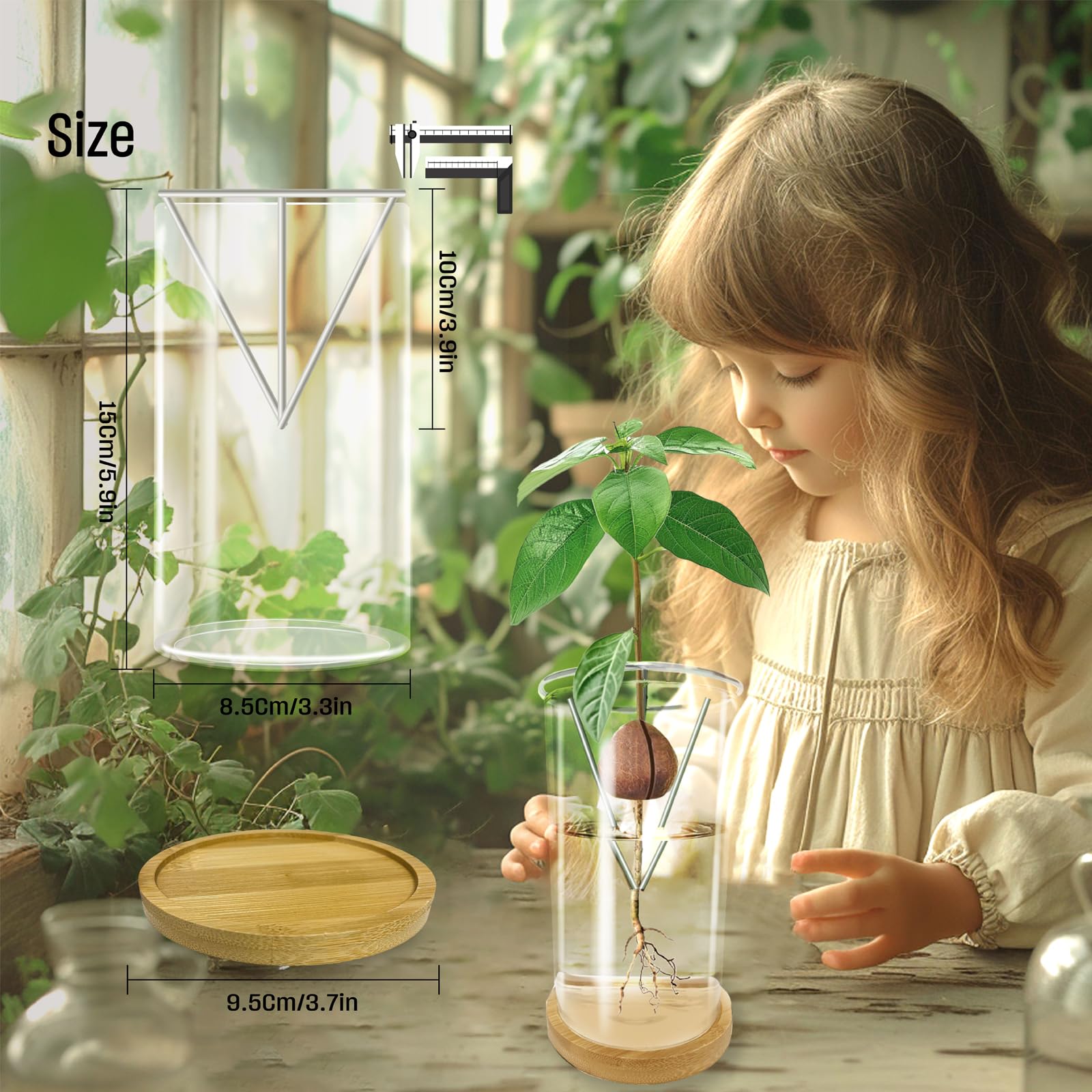 Packing list: Avocado growing kit is made of borosilicate glass and durable stainless steel holder, will not rust due to long-term immersion, clear glass allows you to observe seeds germination and growth.