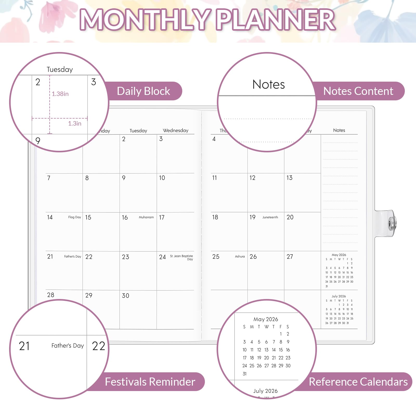 - Annual Planner: 2025-2026 planner features 24 months from Jan 2025 to Dec 2026 for easy academic planning and scheduling. The grid for each month provides ample recording space for daily, appointments and birthdays planning.
