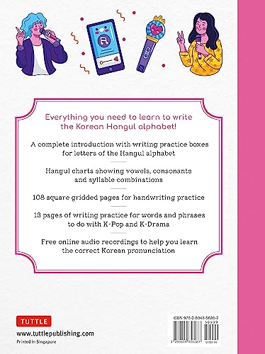 Korean K-Pop and K-Drama Language Workbook: A Complete Introduction to Korean Hangul with 108 Gridded Sheets for Handwriting Practice (Free Online Audio for Pronunciation Practice)